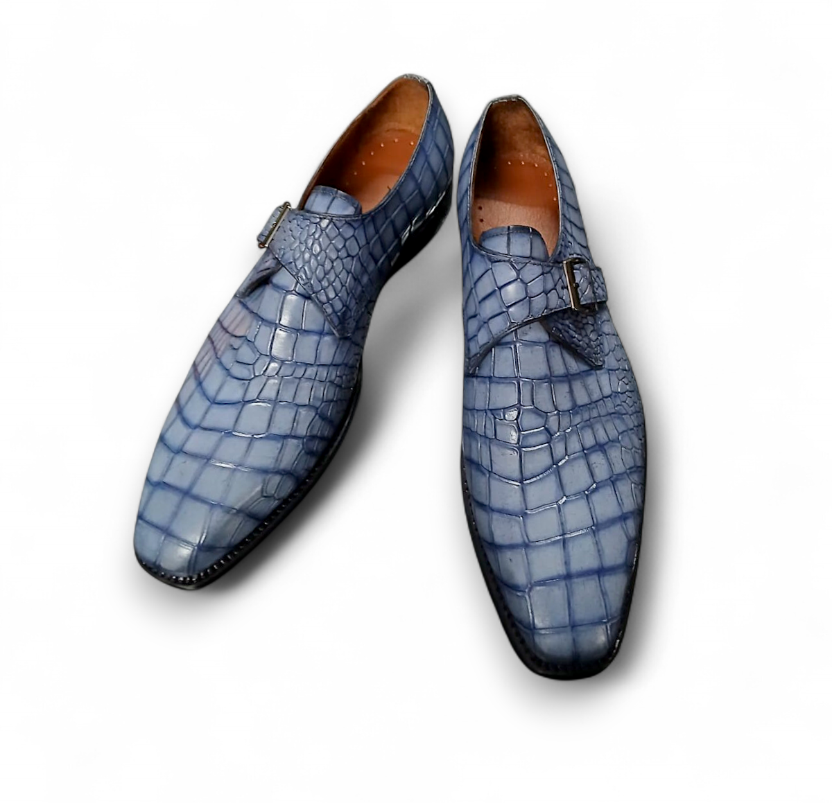 Crafted Leather Classic Handmade Men Genuine Crocodile/Alligator Texture Leather Dress Shoes