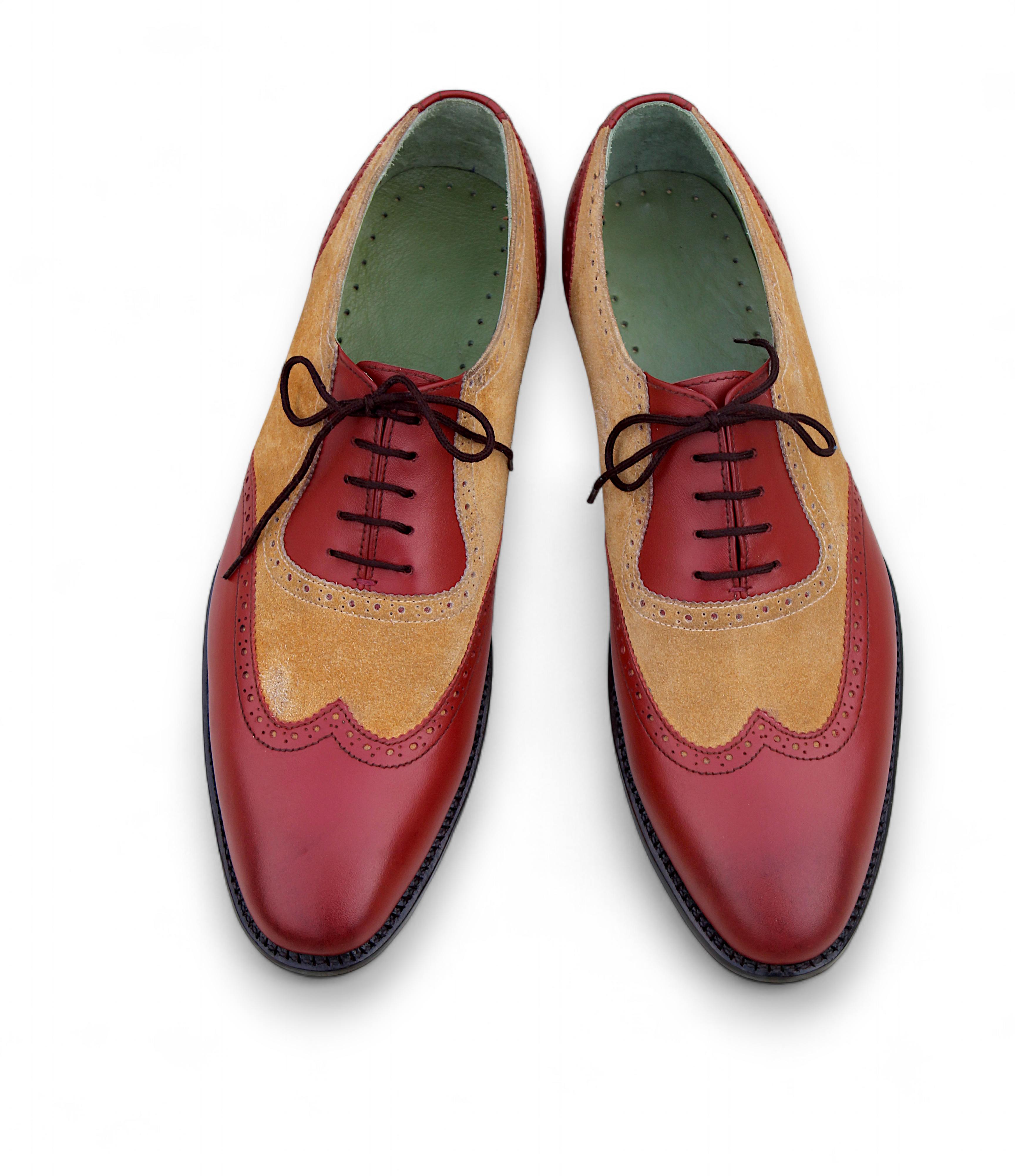 Crafted Leather Men Red Brown Suede Classic Oxford Wingtip Lace up Dress Shoes