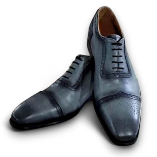 Crafted Leather Gray Patina Leather Wingtip Oxford Dress Shoes
