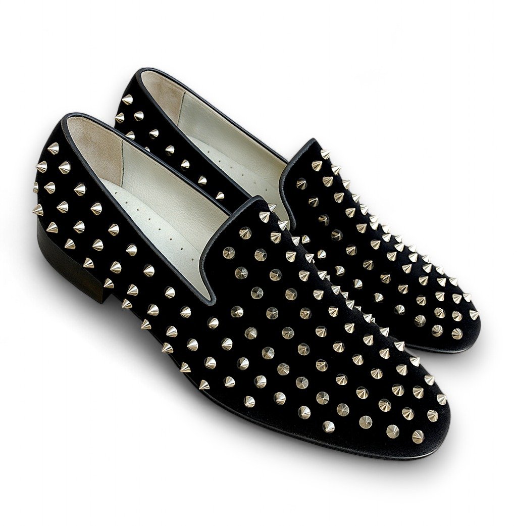 Crafted Leather Classic Black Velvet Silver Studded Loafers Shoes Prom Wedding Loafers
