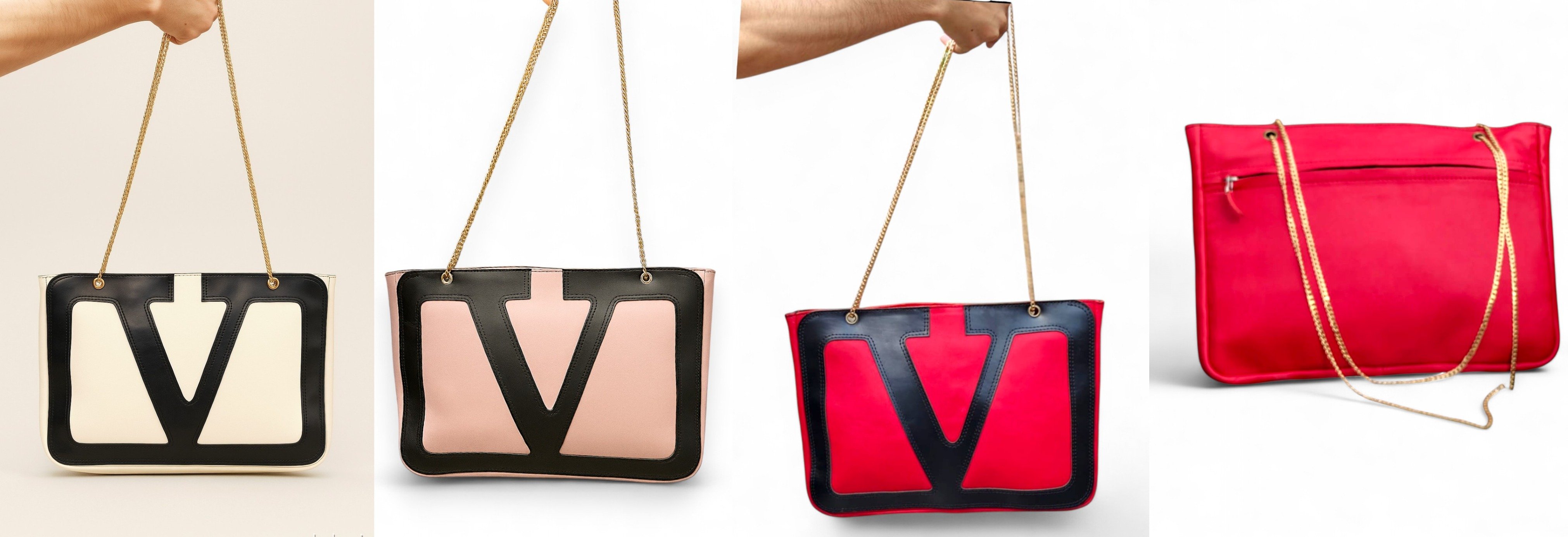 Crafted Leather Classic and Luxury Design Black / Butter White V Logo Shopping Bag For Women