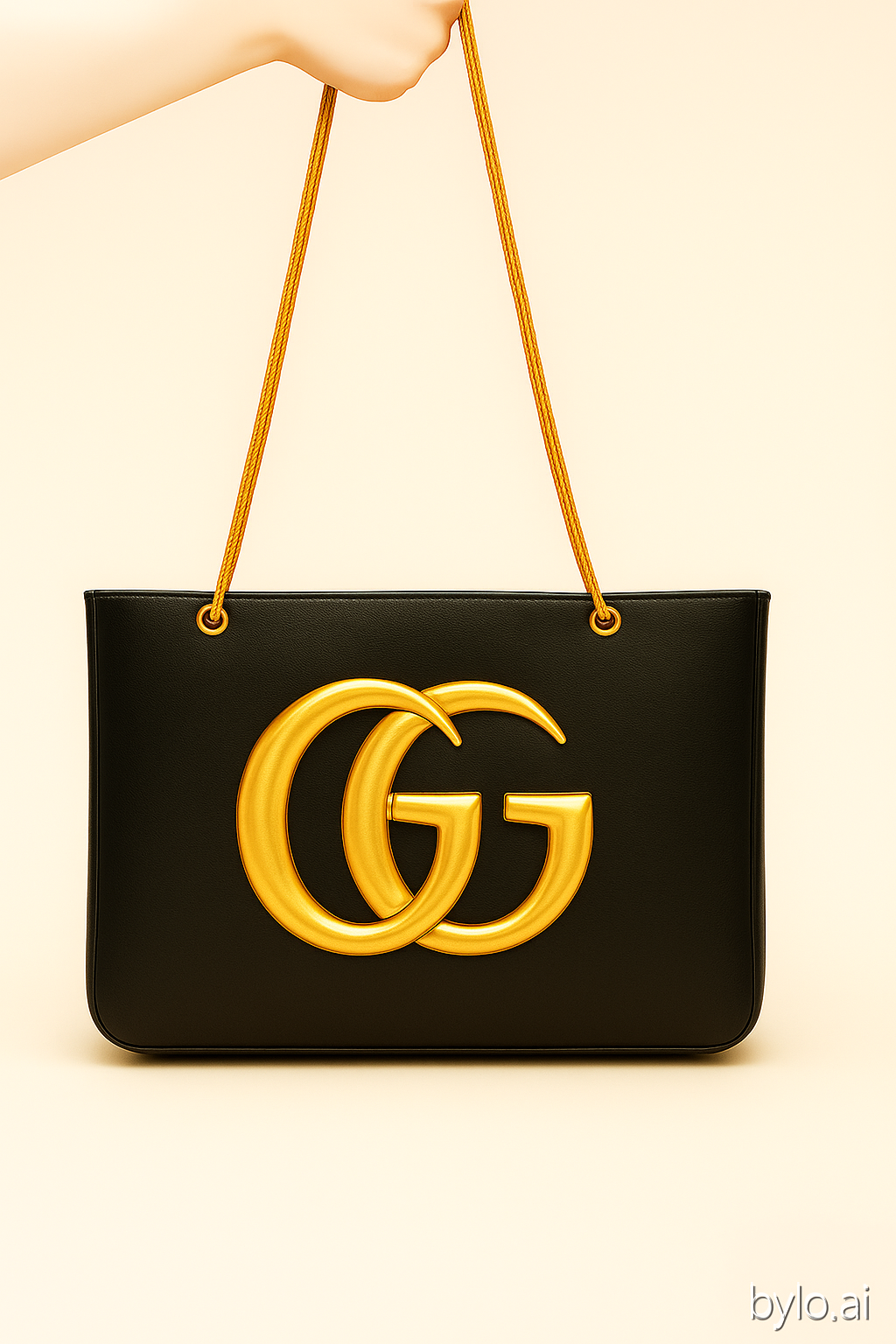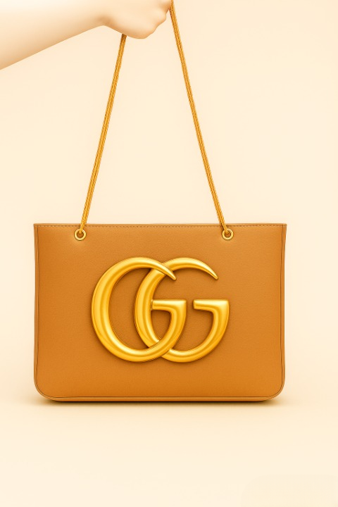 Crafted Leather GG golden buckle medium shopping bag. The bag features a contrasting maxi Sand can be worn over the shoulder or crossbody .