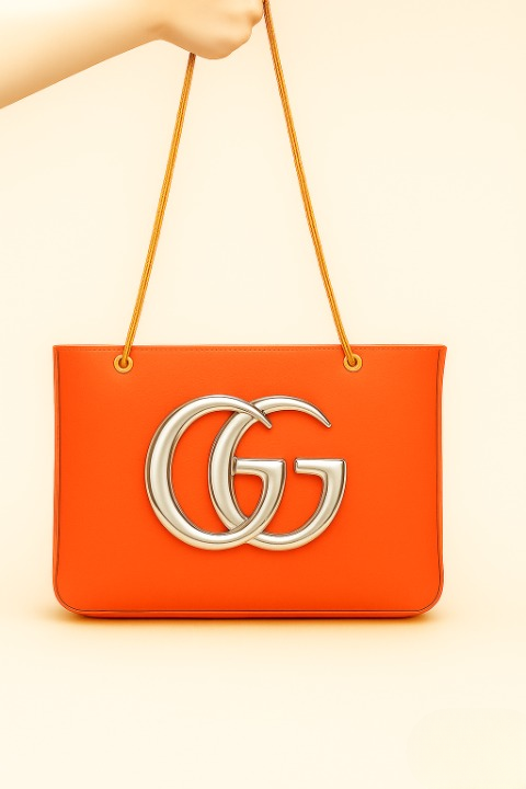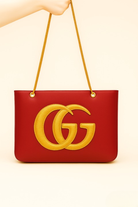 Crafted Leather Classic Designer Oxblood with ''GG'' Golden Buckle Women Shopping Bag