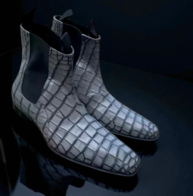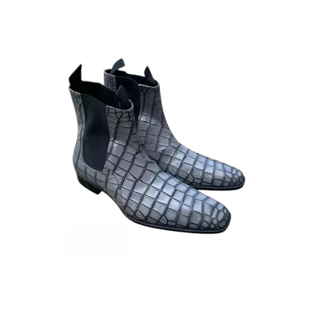 Crafted Leather Men’s Handmade Dress Shoes Gray Crocodile/Alligator Leather Chelsea Boot