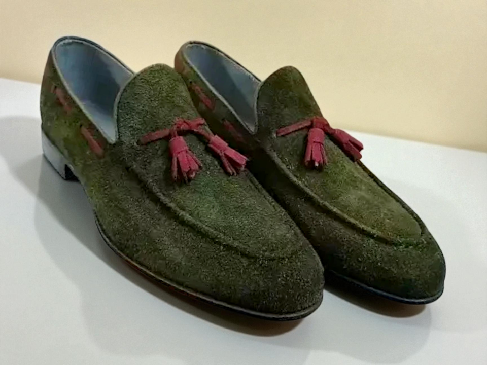 Crafted Leather Men’s Classic Green Suede Leather Tassel Loafers Dress Shoes