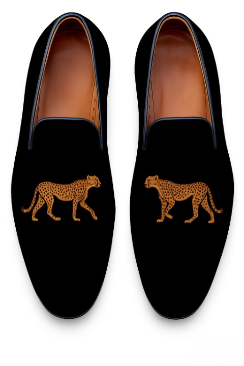 Crafted Leather Classic Cheetah Black Velvet Loafers Men Shoes