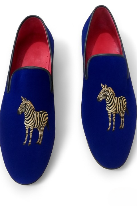 Crafted Leather Classic Zebras Blue Velvet Loafers Men Shoes