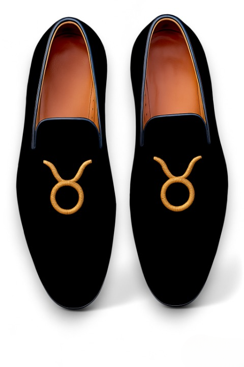 Crafted Leather Velvet '' Taurus '' Astrological Sign Loafers Shoes Black