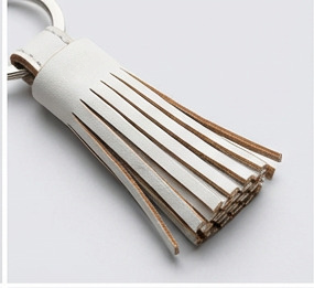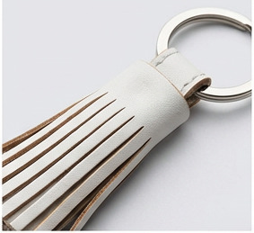 Upper: Handcrafted white leather tassel keychain featuring premium silver hardware. Stylish, durable, and perfect for bags, keys, or gifting. Made with quality leather for a clean, elegant look.