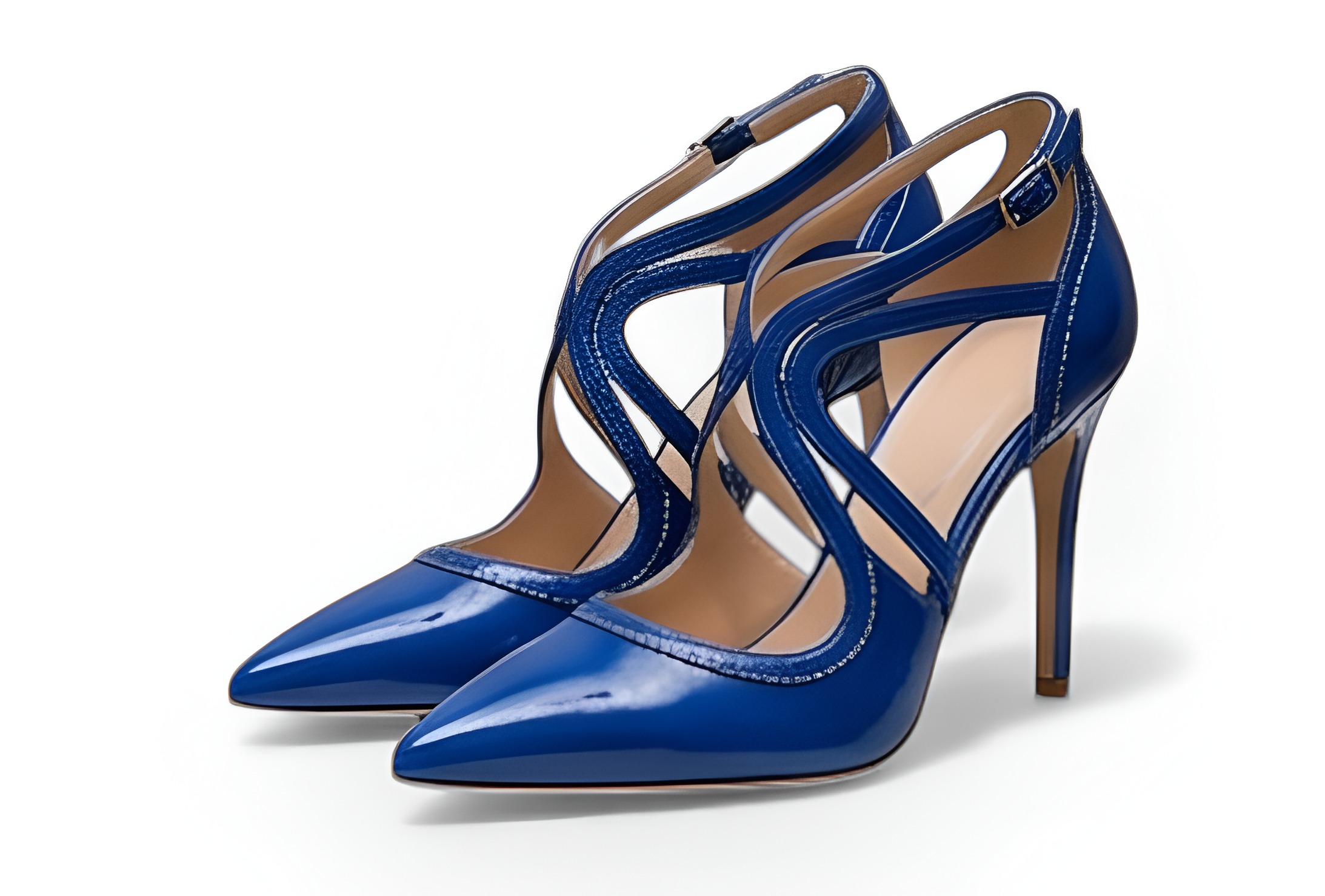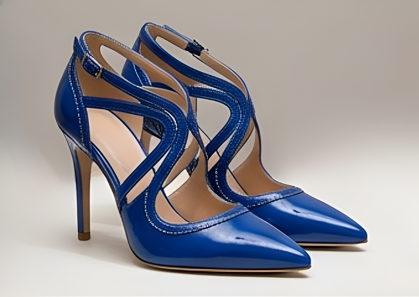 Crafted Leather Classic Women’s High Heel Shoes Blue Leather Pointed Toe Design Elegant Monk Strap Suitable for Luxury Fashion
