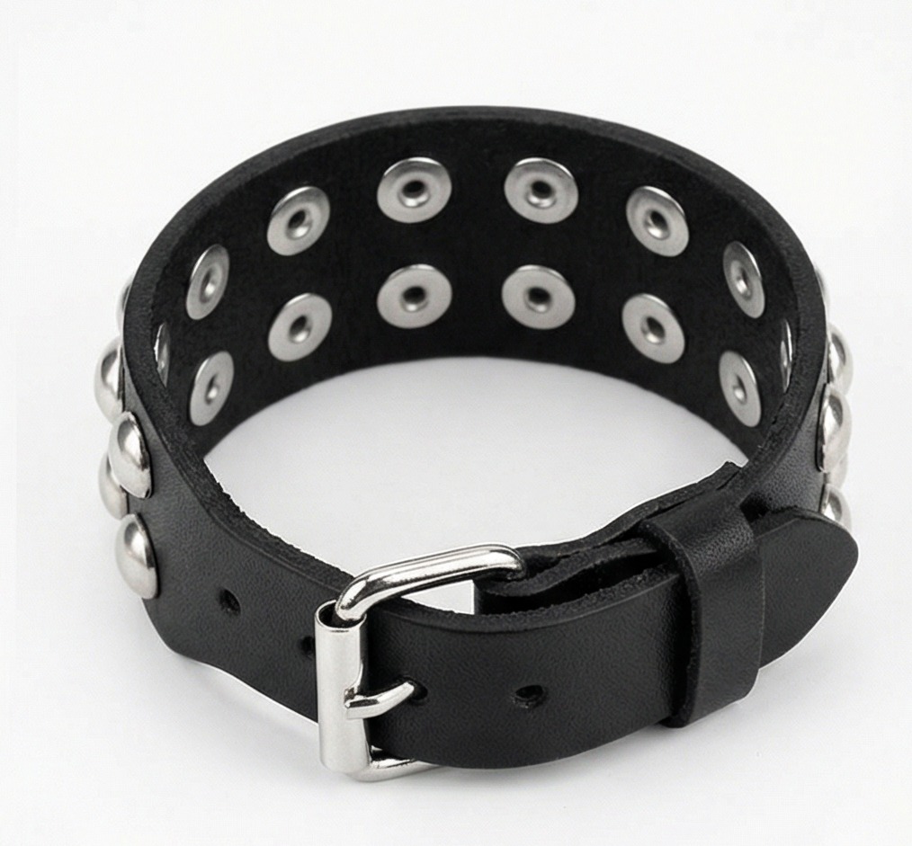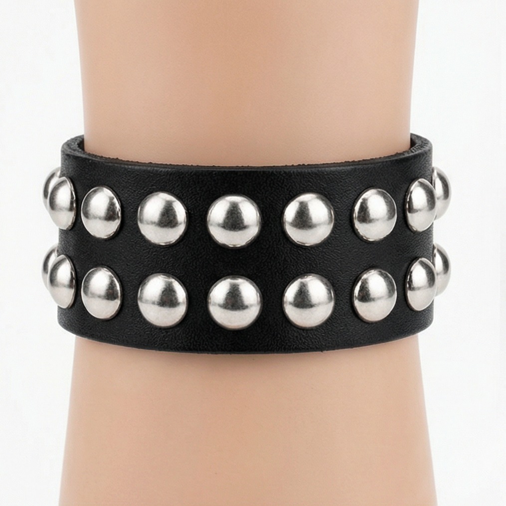 A handcrafted black leather wristband 2 row dome studs designed for a bold and edgy look, this wristband offers a secure fit with adjustable straps and perfect for alternative fashion. Please include your exact wrist measurement, taken with a soft tape measure (in centimeters), in a note at checkout. I cannot make your wristband without this information