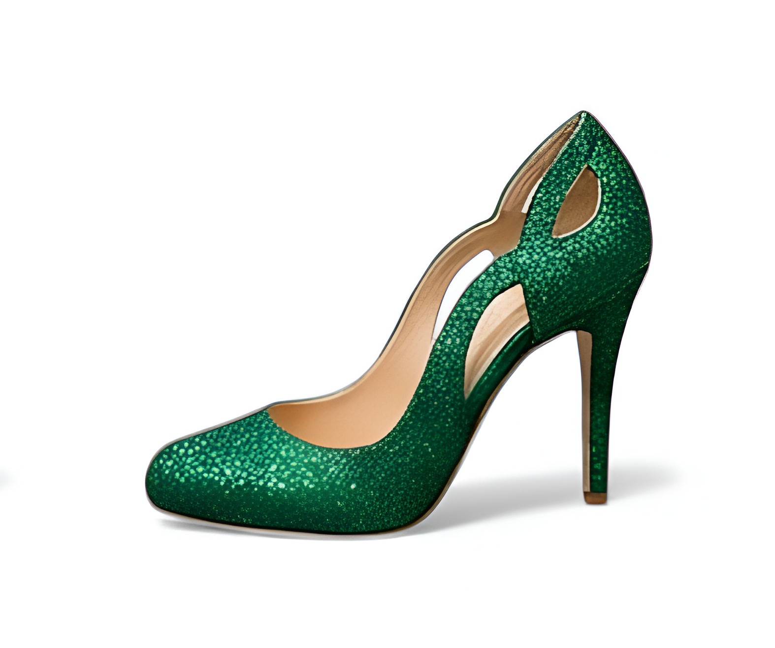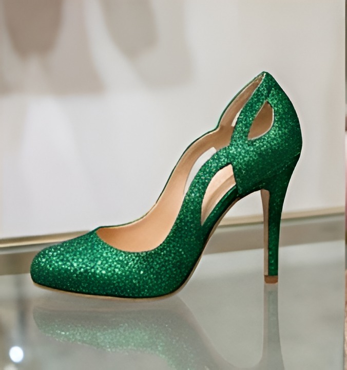 Crafted Leather Classic Women Green Glitter Unique Side cutout Design Pointed Toe Dress Shoes