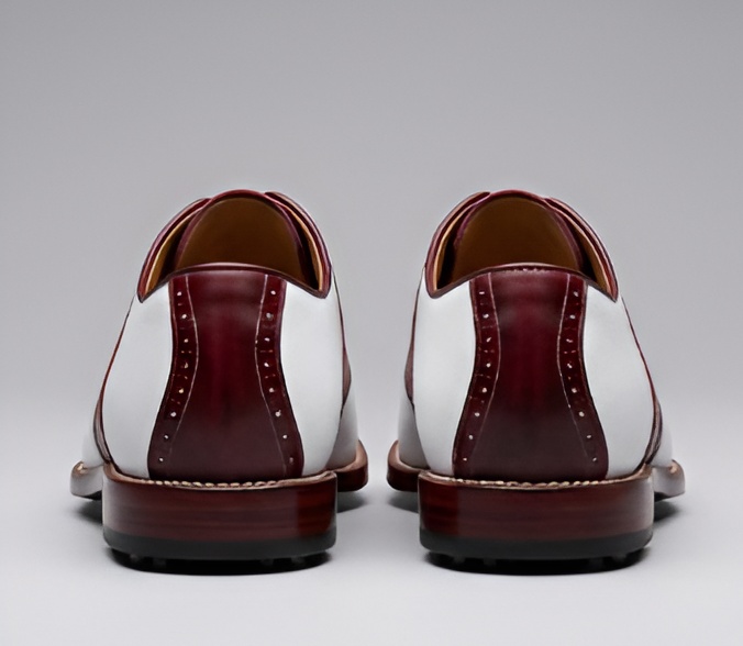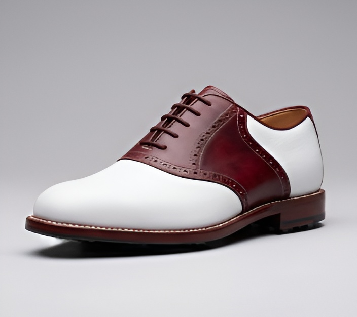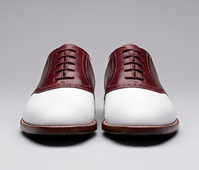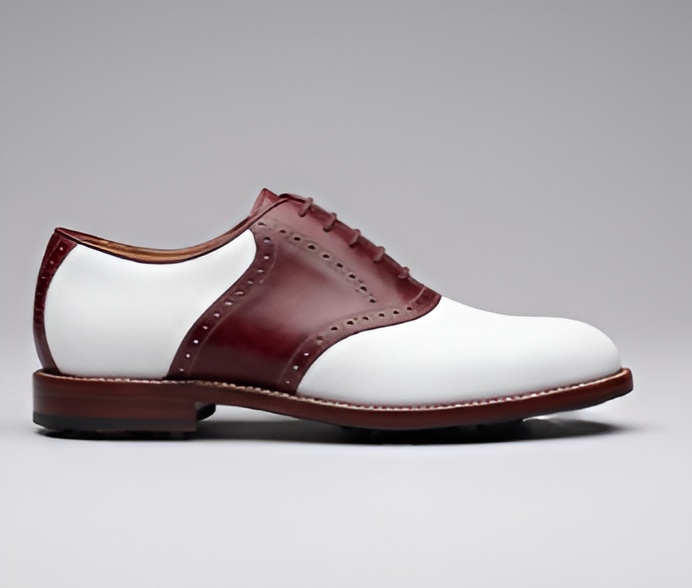 Crafted Leather Men’s Handcrafted Burgundy White Leather Dress Saddle Golf Shoes