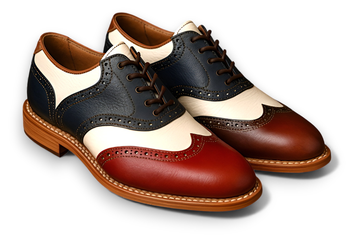 Crafted Leather Men’s Handcrafted Classic Multi Color Leather White Blue Red and Brown Wingtip Lace up Saddle Golf Shoes