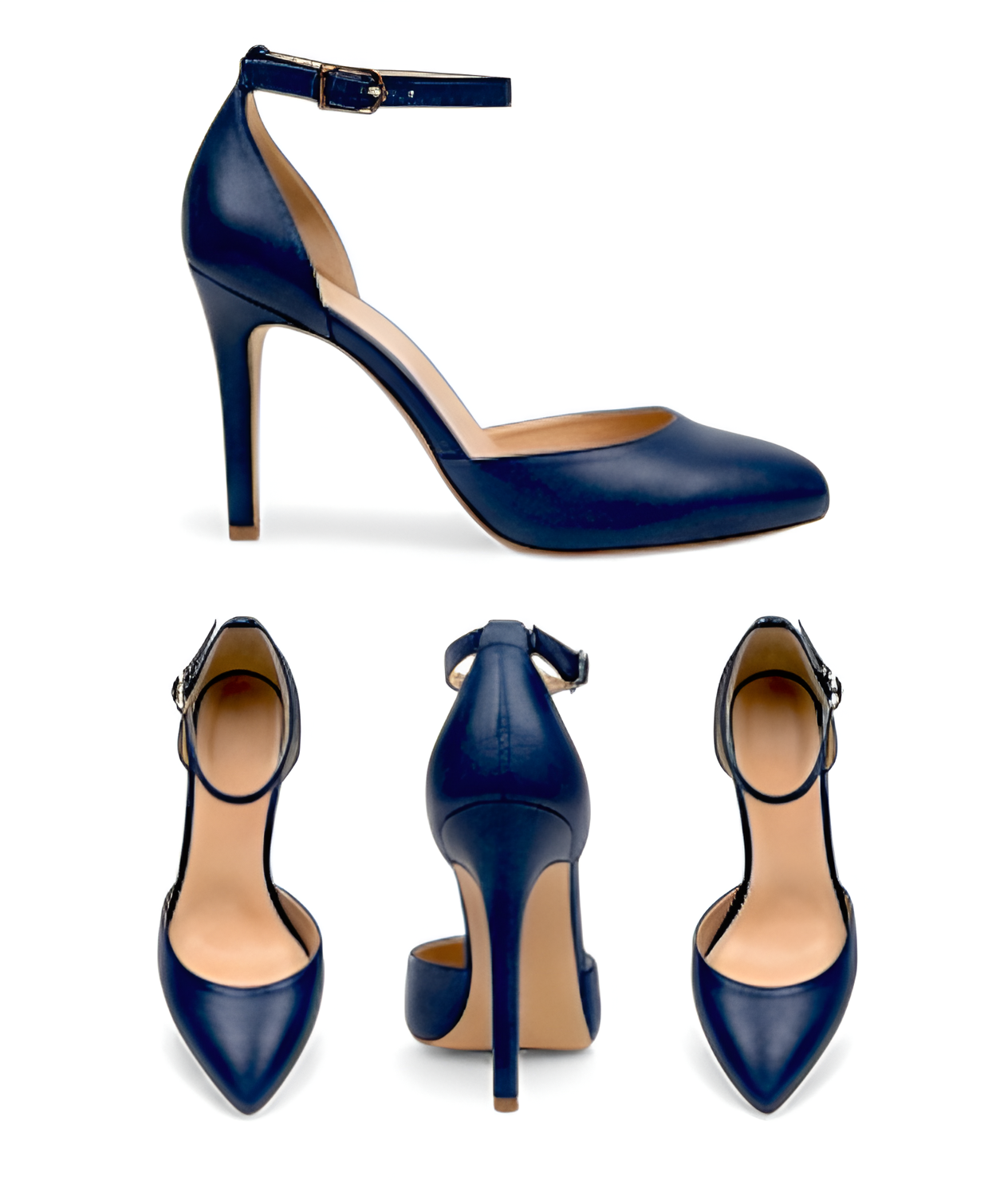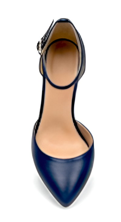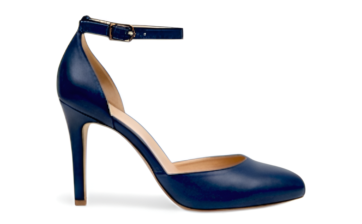 Crafted Leather Classic Women Navy Blue Leather Ankle Strap High Heel Dress Shoes