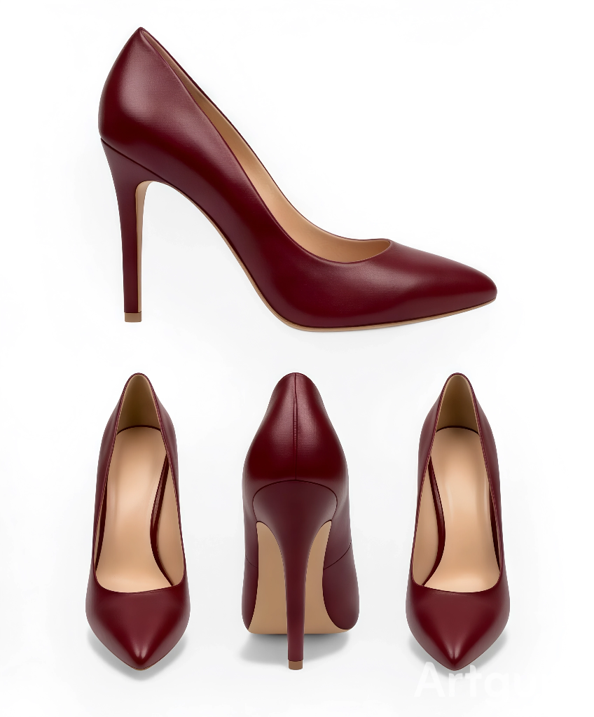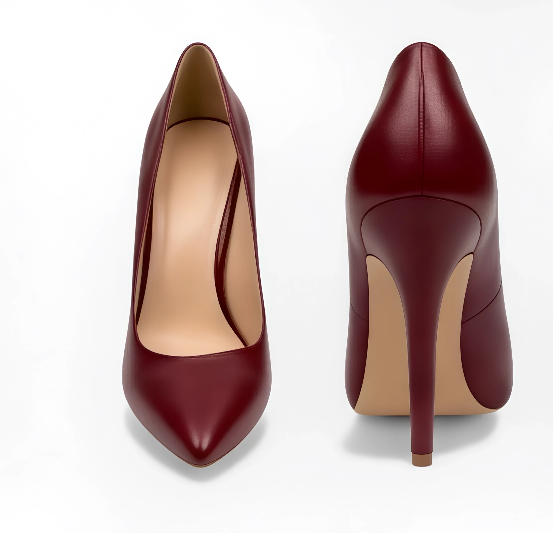 Crafted Leather Classic Women Burgundy High Heel Dress Shoes