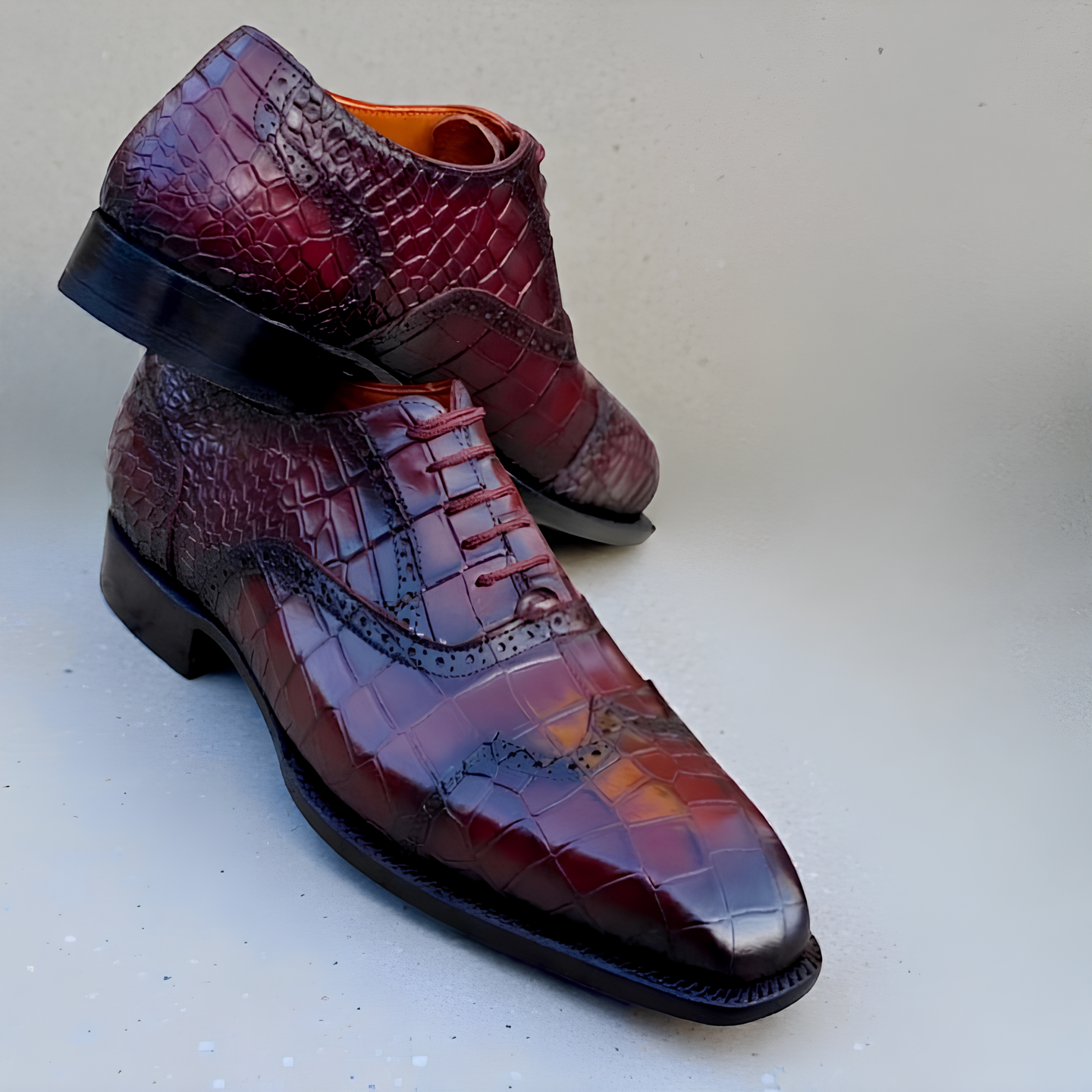 Crafted Leather Men’s Handcrafted Classic Burgundy Crocodile/Alligator Leather Dress Shoes