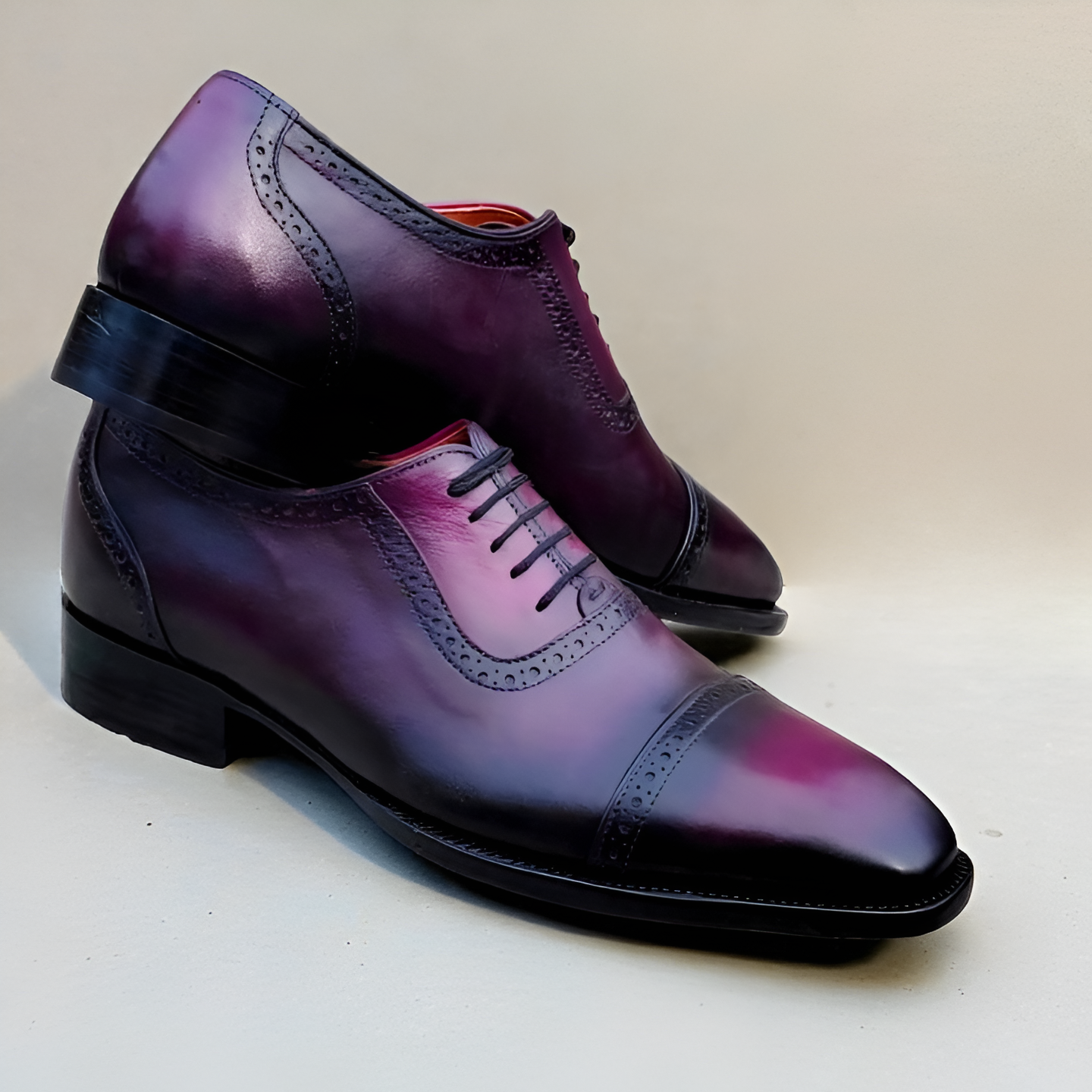 Crafted Leather Men’s Handcrafted Classic Purple Patina Leather Dress Shoes
