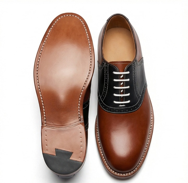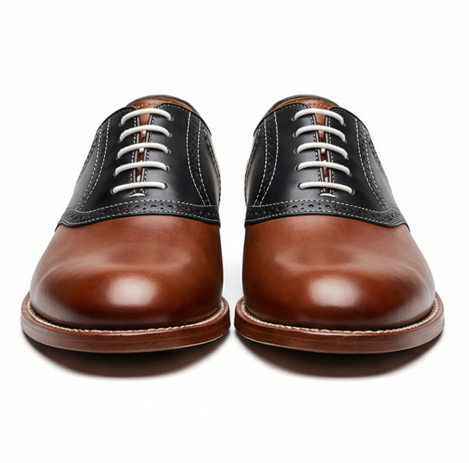 Crafted Leather Men’s Brown Black Leather Lace up Saddle Golf Shoes