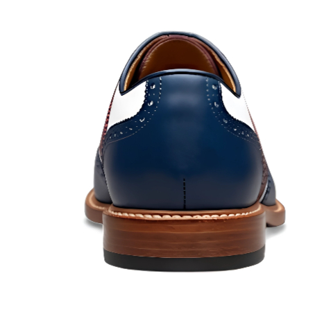 Crafted Leather Men’s Blue / Burgundy / White Leather Wingtip Style Oxford Lace up Saddle Golf Shoes