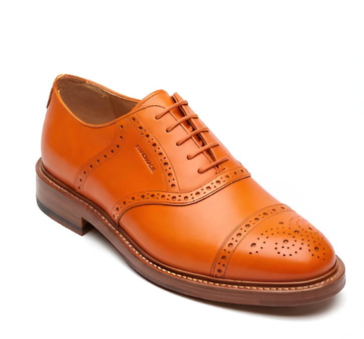 Crafted Leather Mens Orange Leather Lace up Saddle Golf Shoes