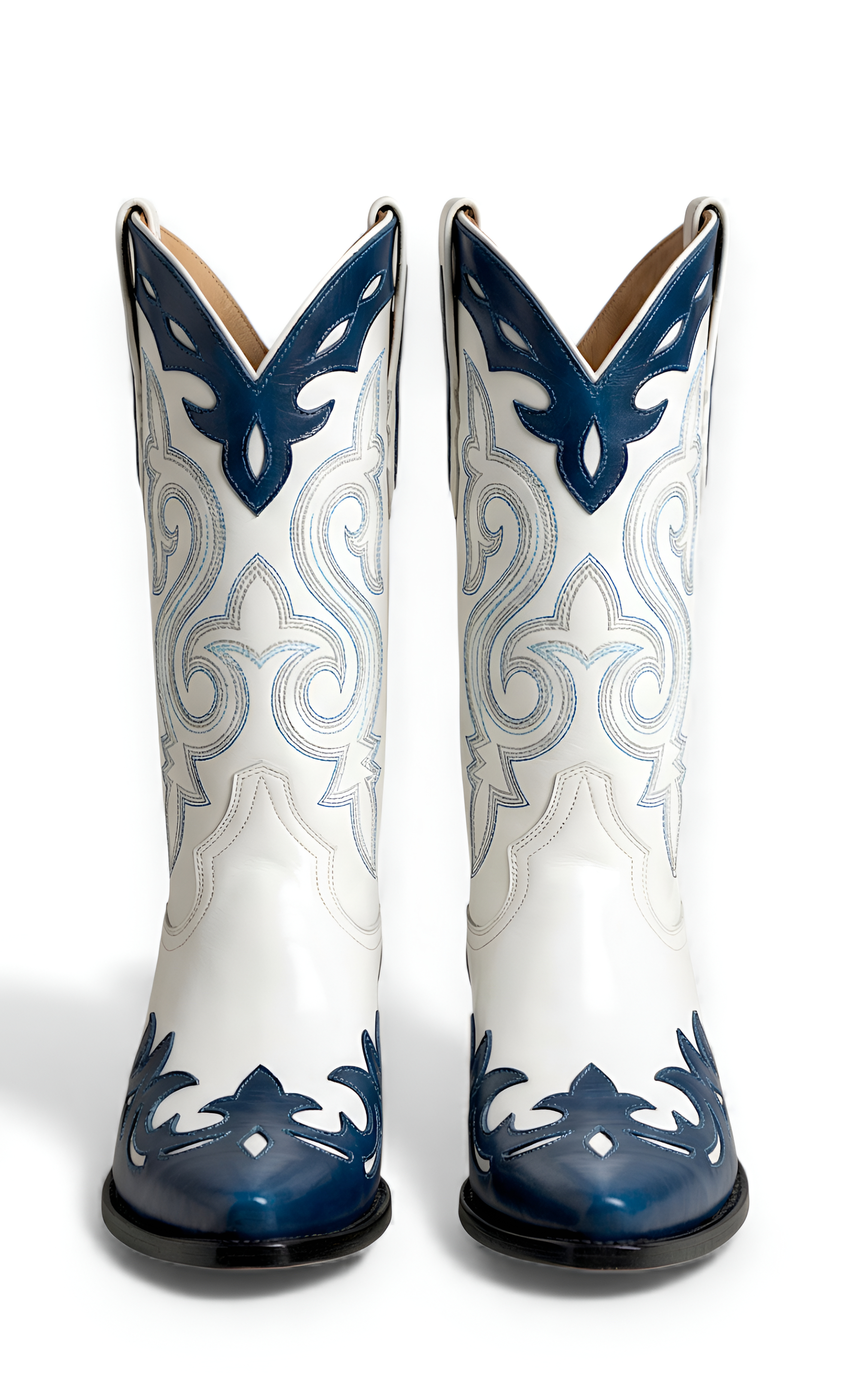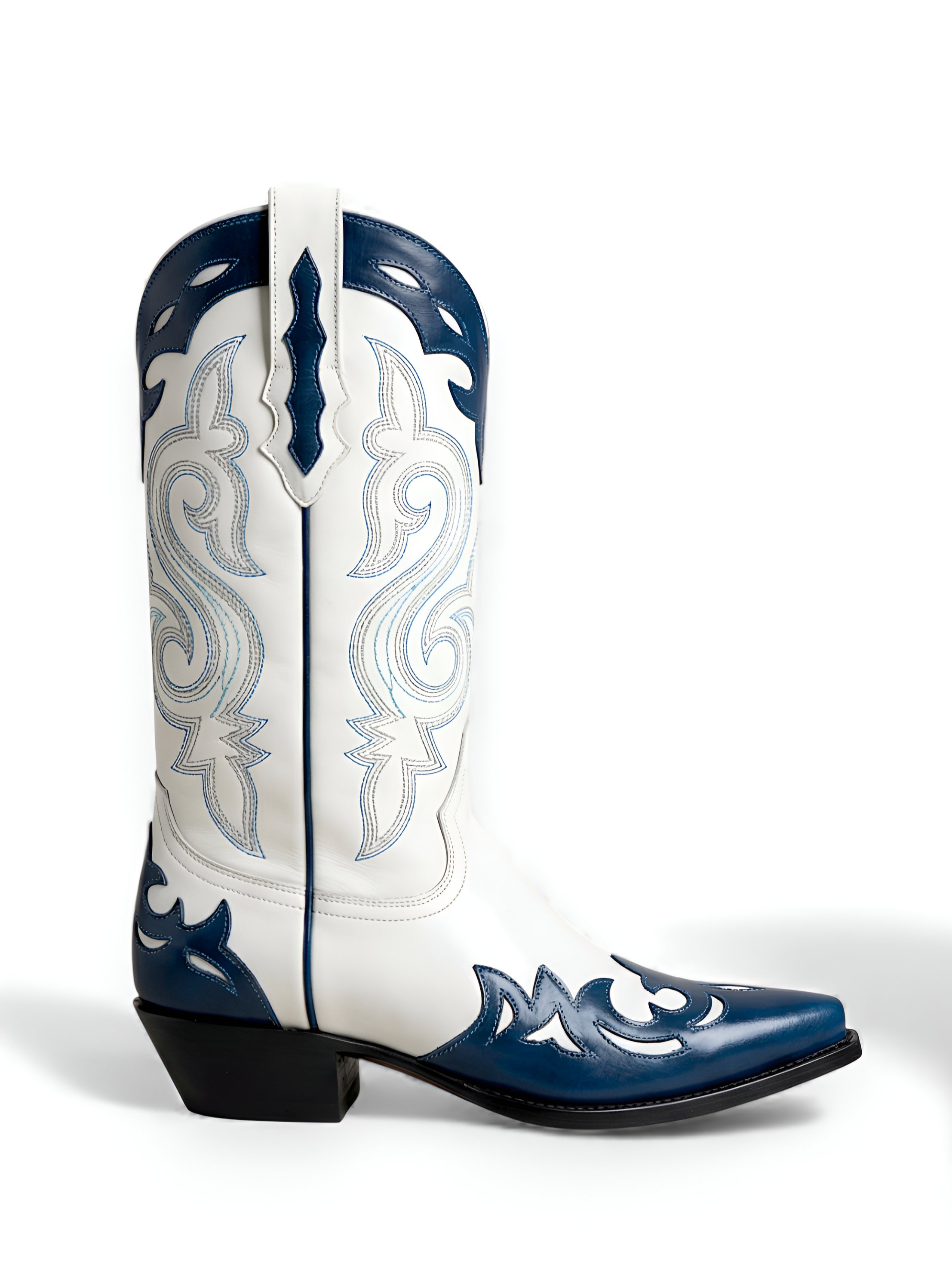 Crafted Leather Blue/White Fancy Cowboy Elegant Decorative Stitching Pointed Toe Boot