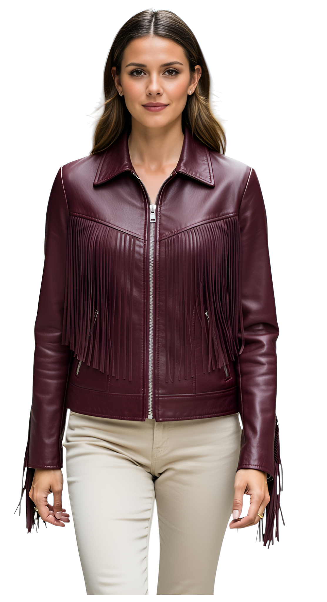 Crafted Leather Classic Designer Women Burgundy Leather Fashion Jacket Motorcycle
