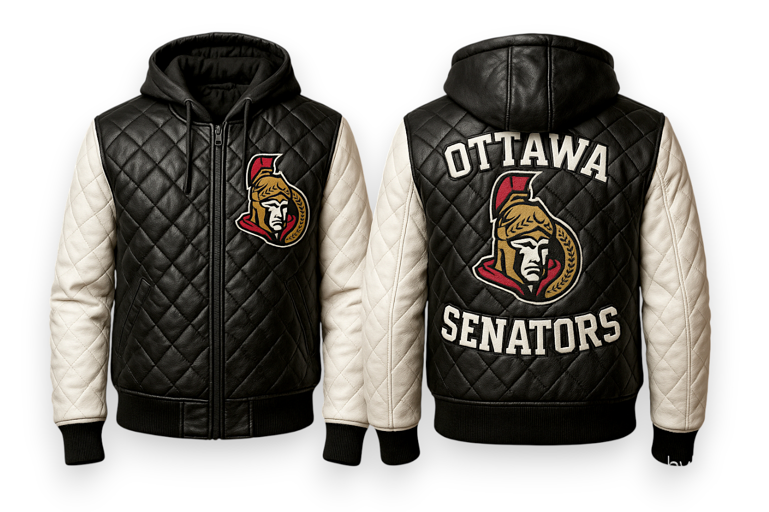 Crafted Leather Men Black White Quilted Leather Varsity Jacket Motorcycle