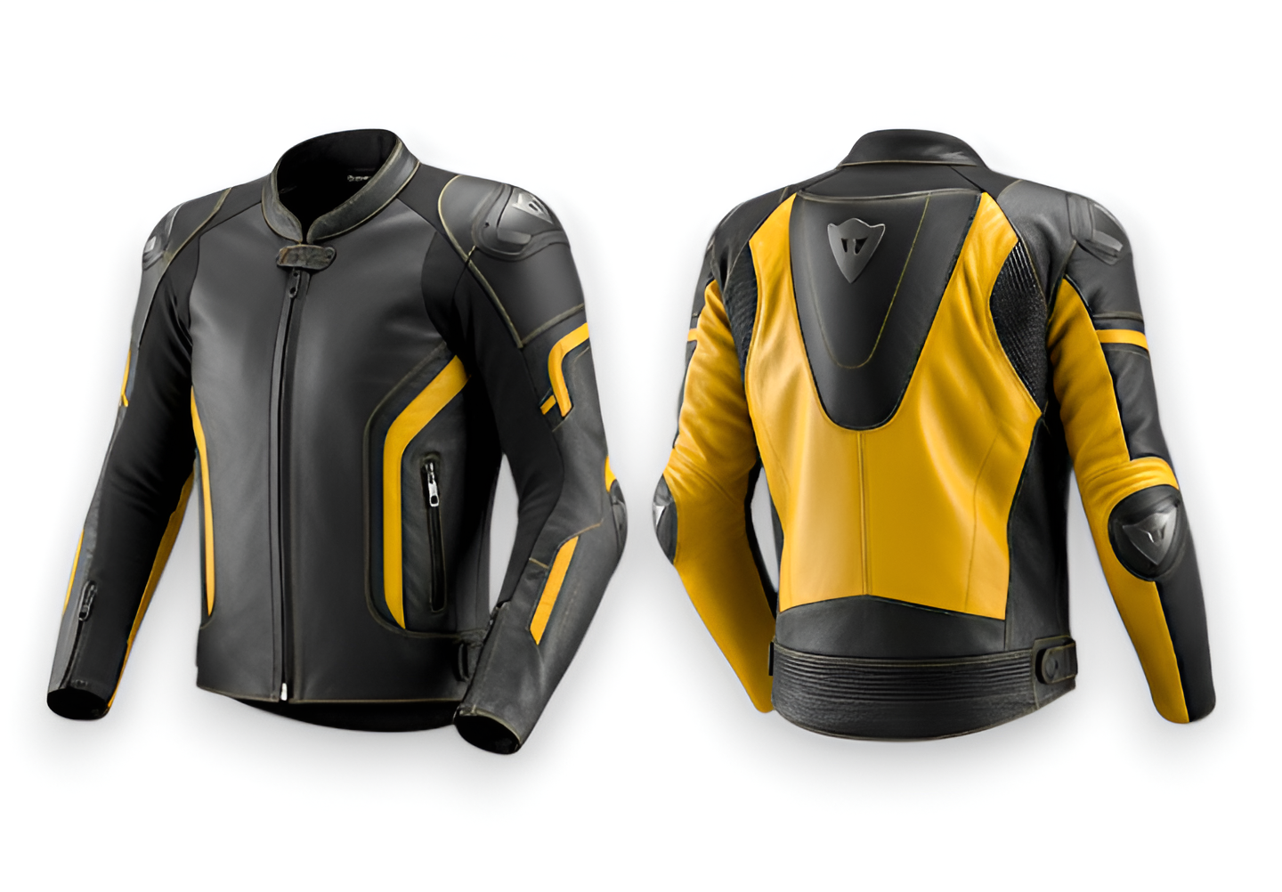 Crafted Leather Design Black Yellow Racing Biker Motorcycle Jacket