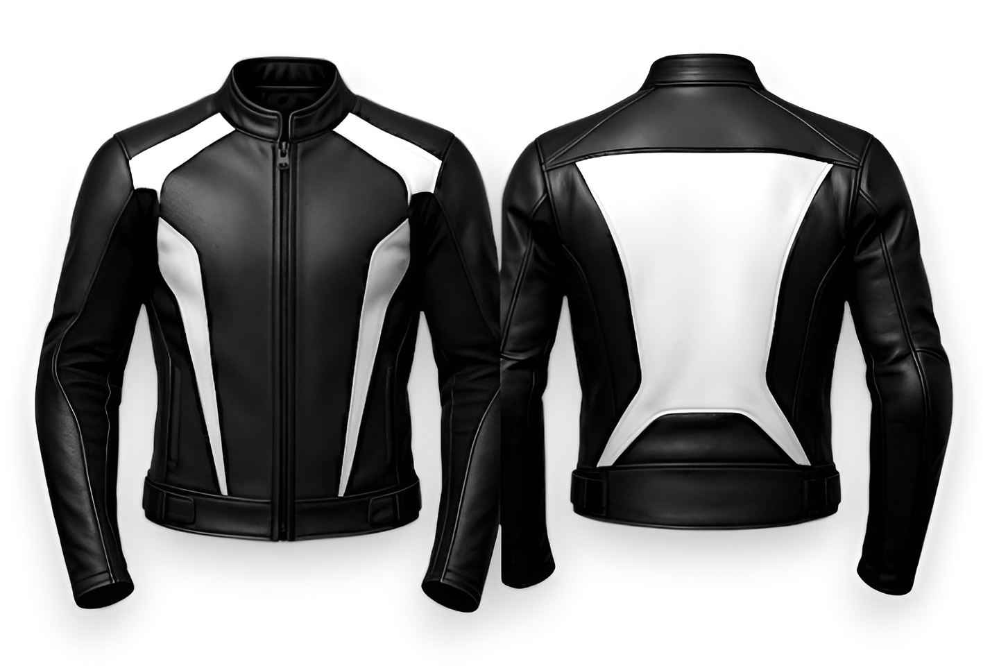 Crafted Leather Design Black White Racing Biker Motorcycle Jacket