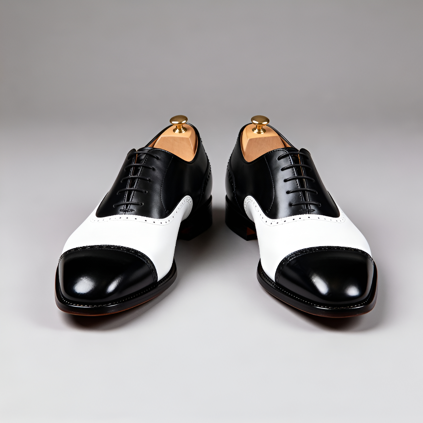 Crafted Leather Mens Red White Leather Lace up Saddle Golf Shoes