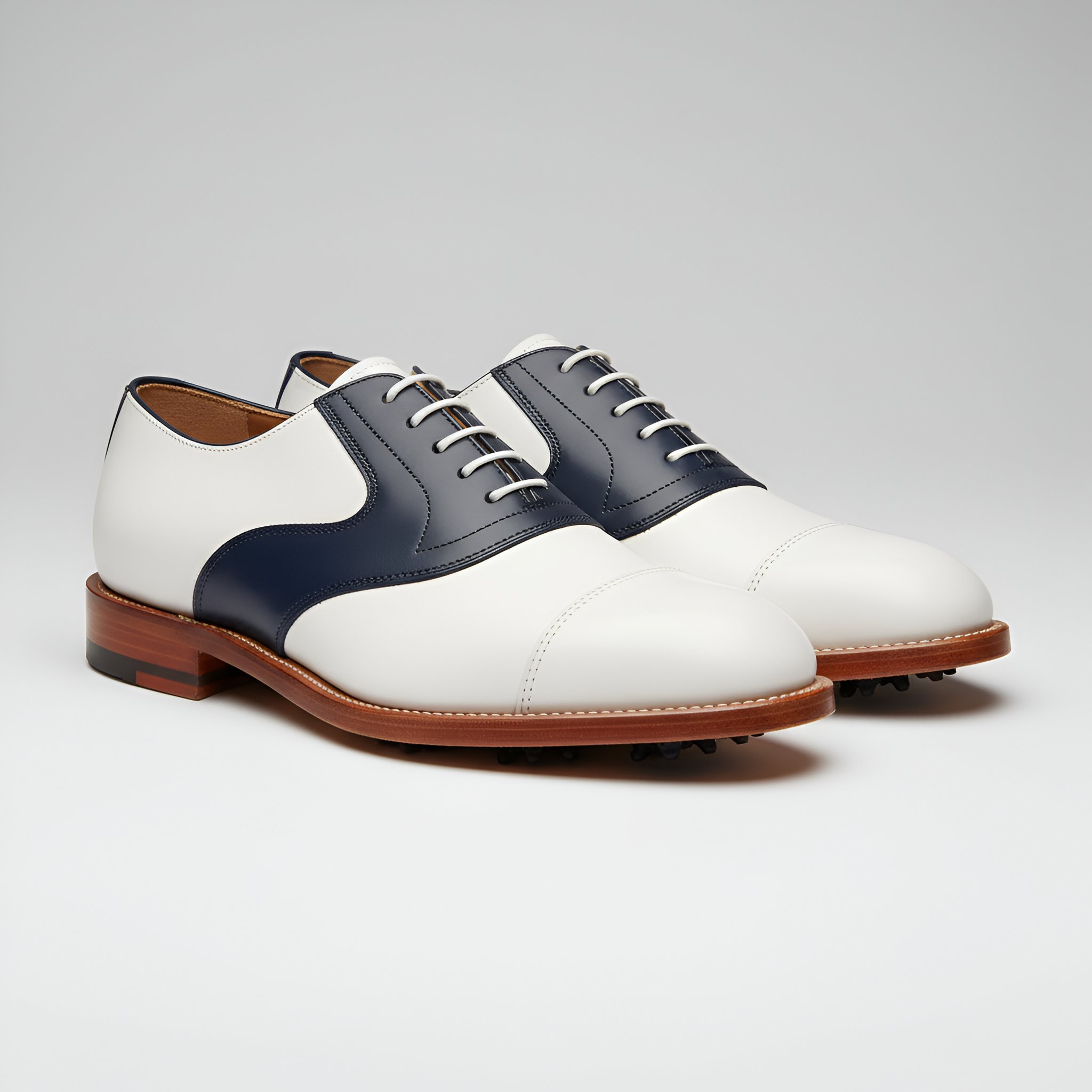 Crafted Leather Mens White Blue Leather Saddle Golf Dress Shoes