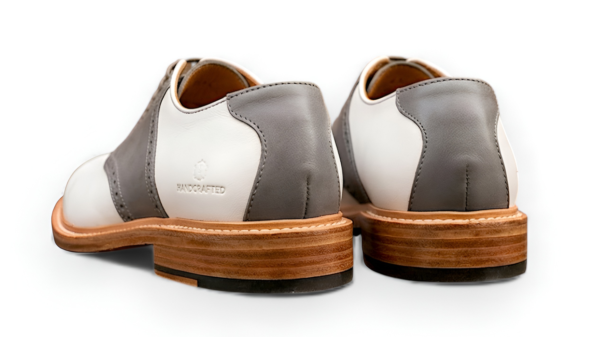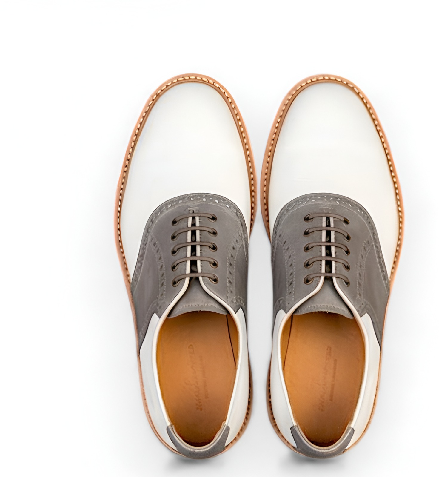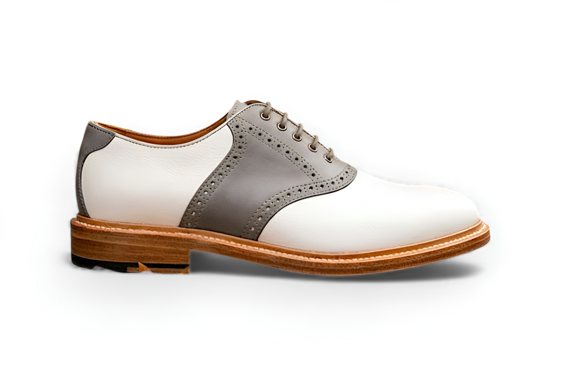 Crafted Leather Mens White Gray Leather Saddle Golf Dress Shoes