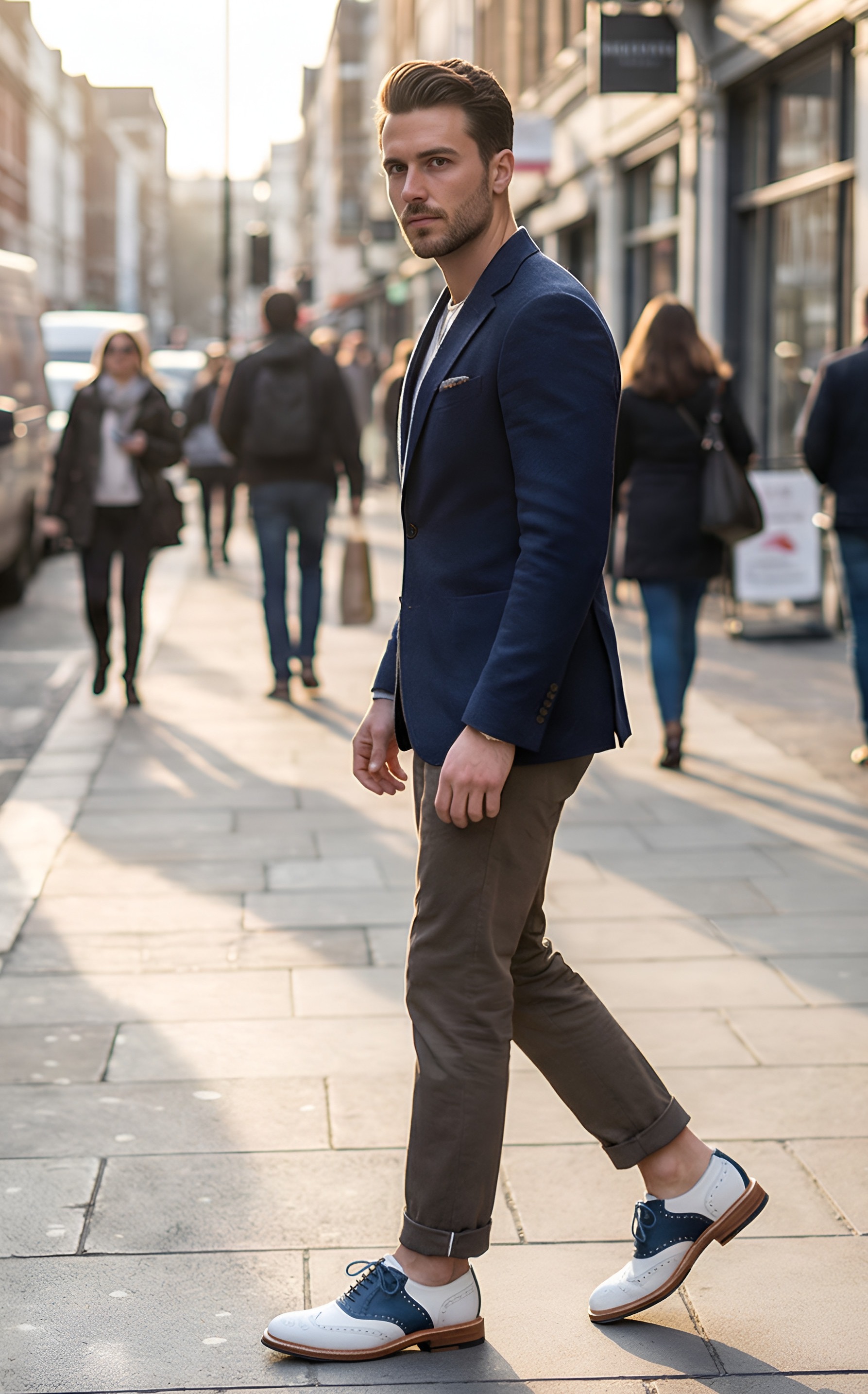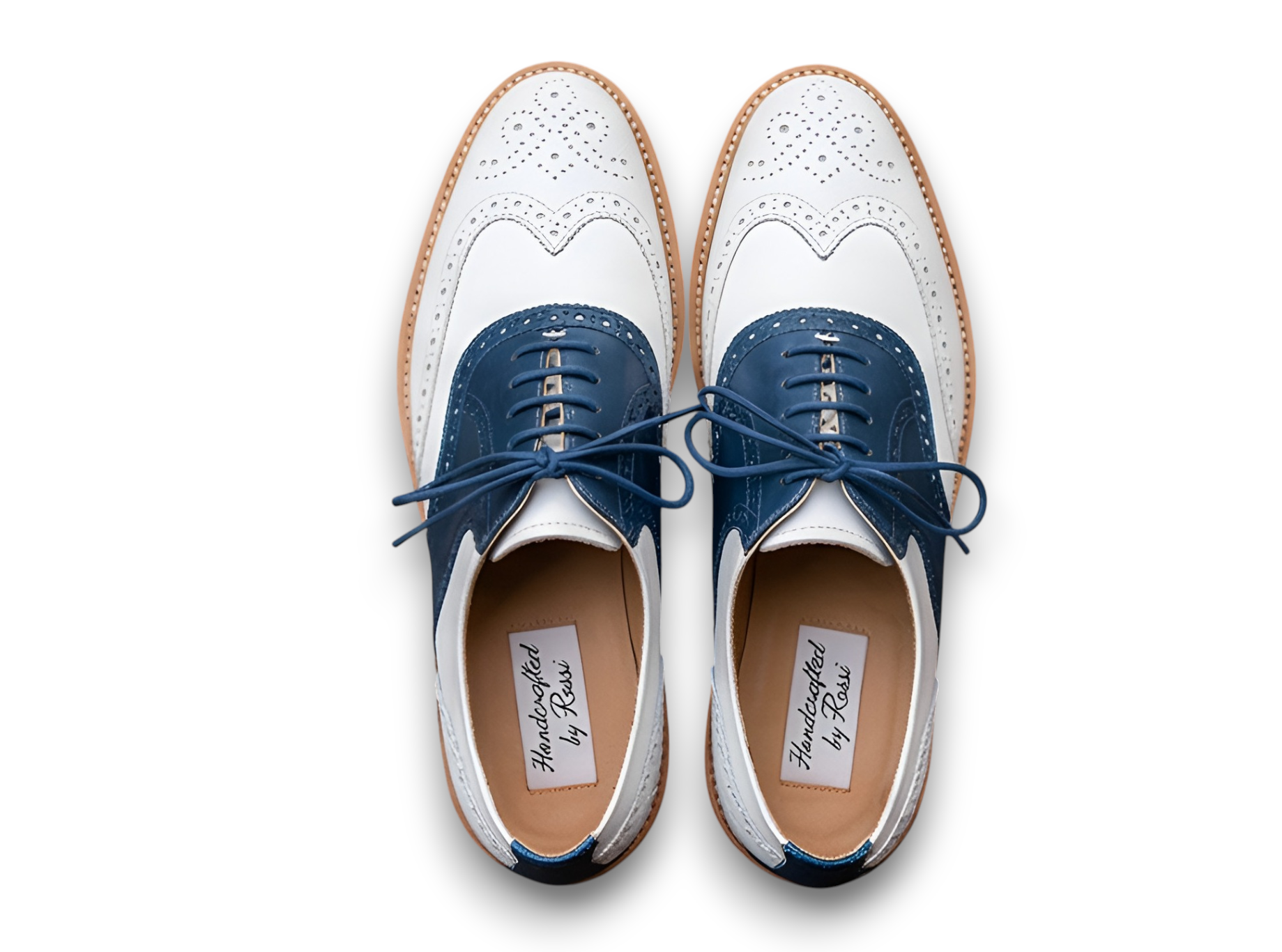 Crafted Leather Mens Blue White Leather Saddle Golf Dress Shoes