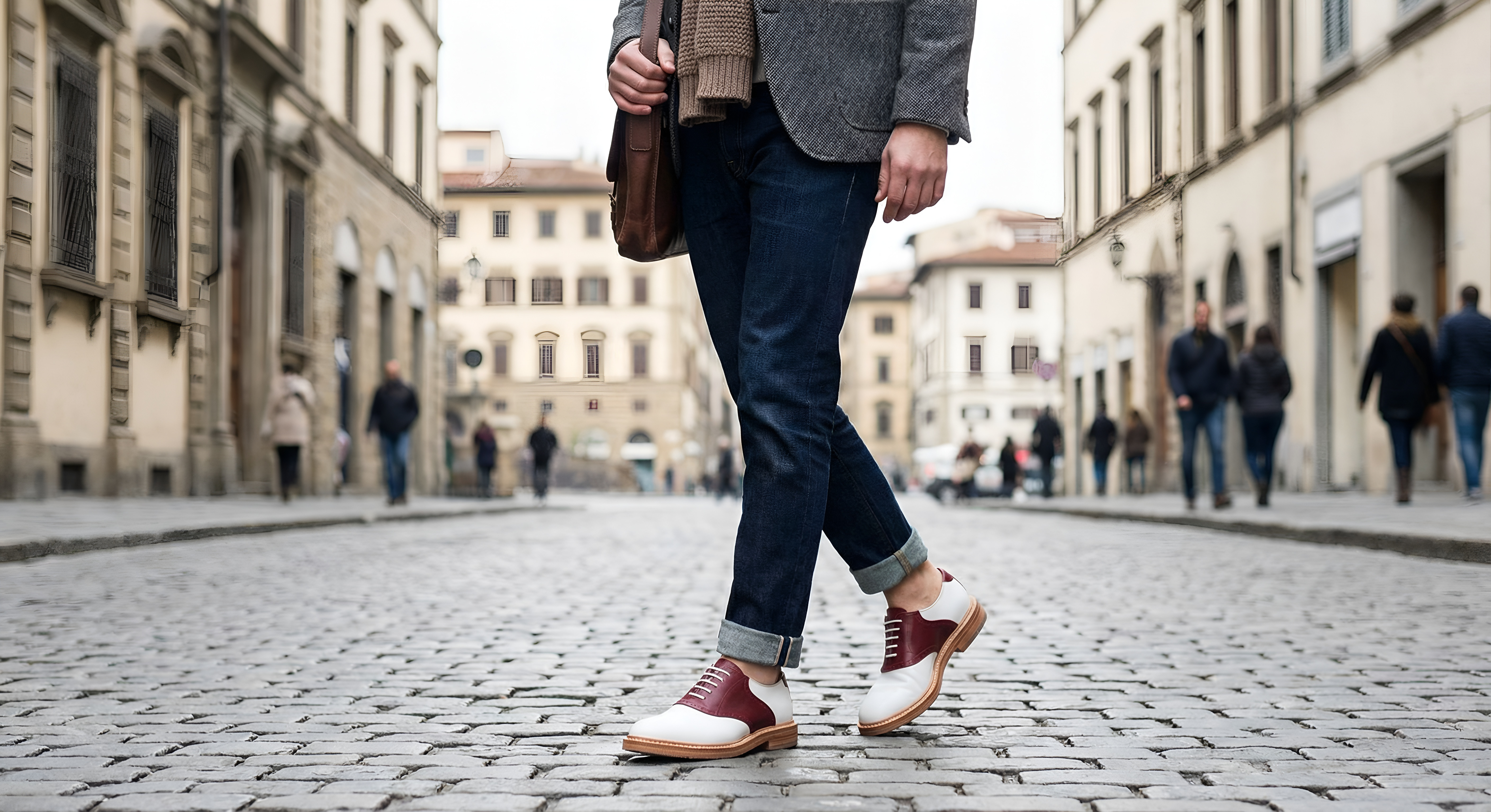 Crafted Leather Mens Burgundy White Leather Saddle Golf Dress Shoes