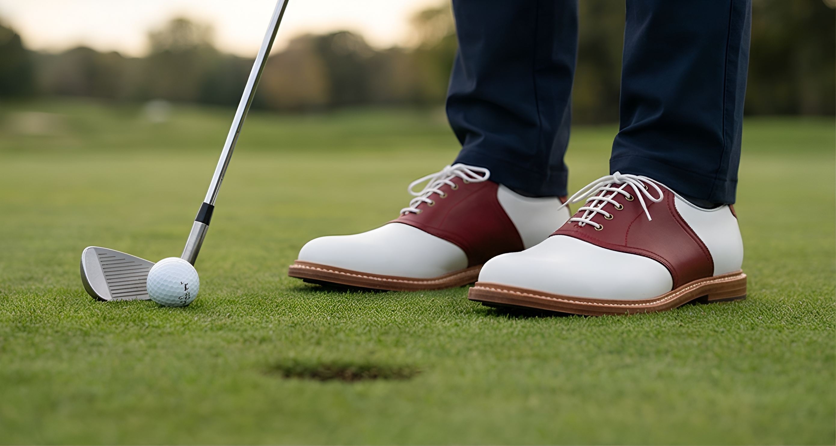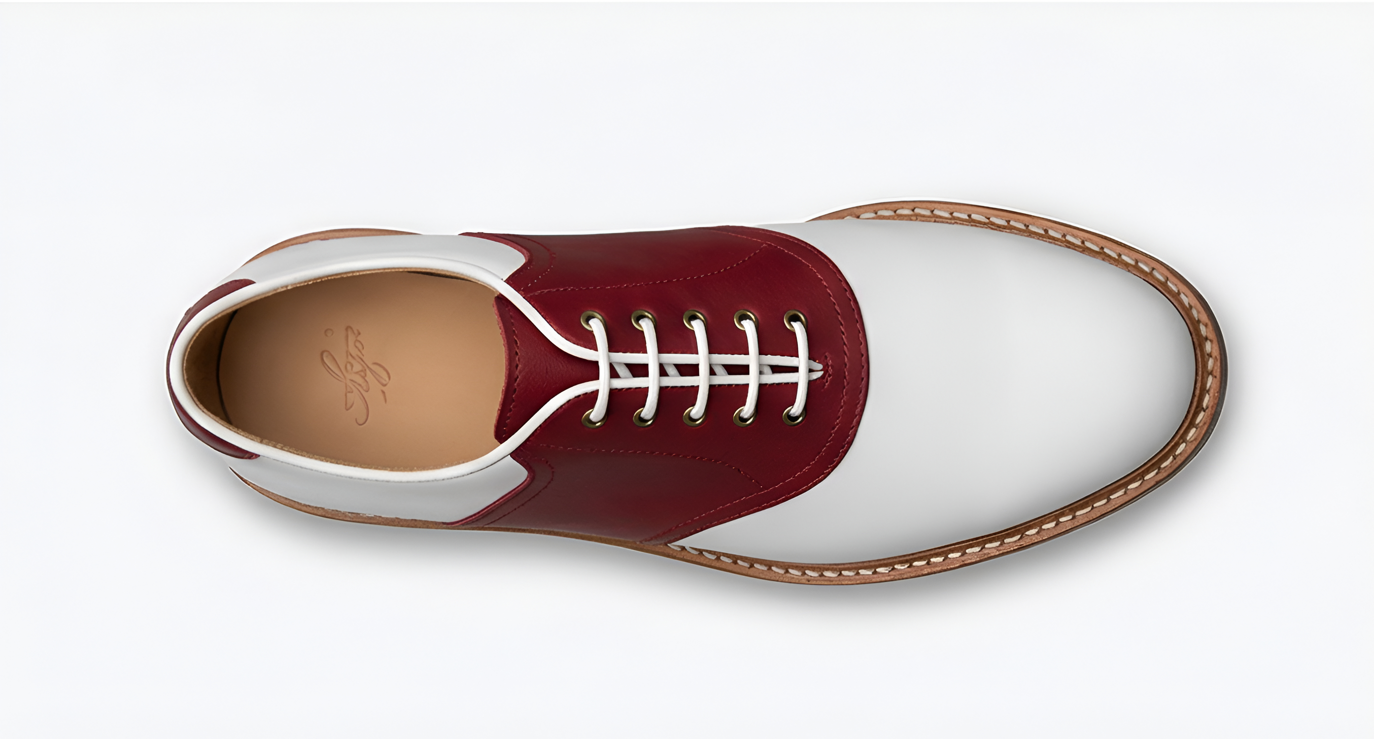 Crafted Leather Mens Red White Leather Saddle Golf Dress Shoes