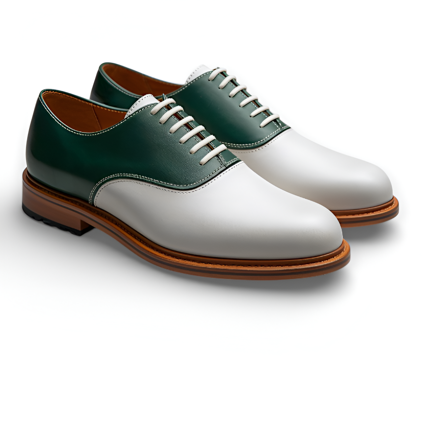 Crafted Leather Mens Designer Classic Green White Leather Saddle Golf Lace up Dress Shoes