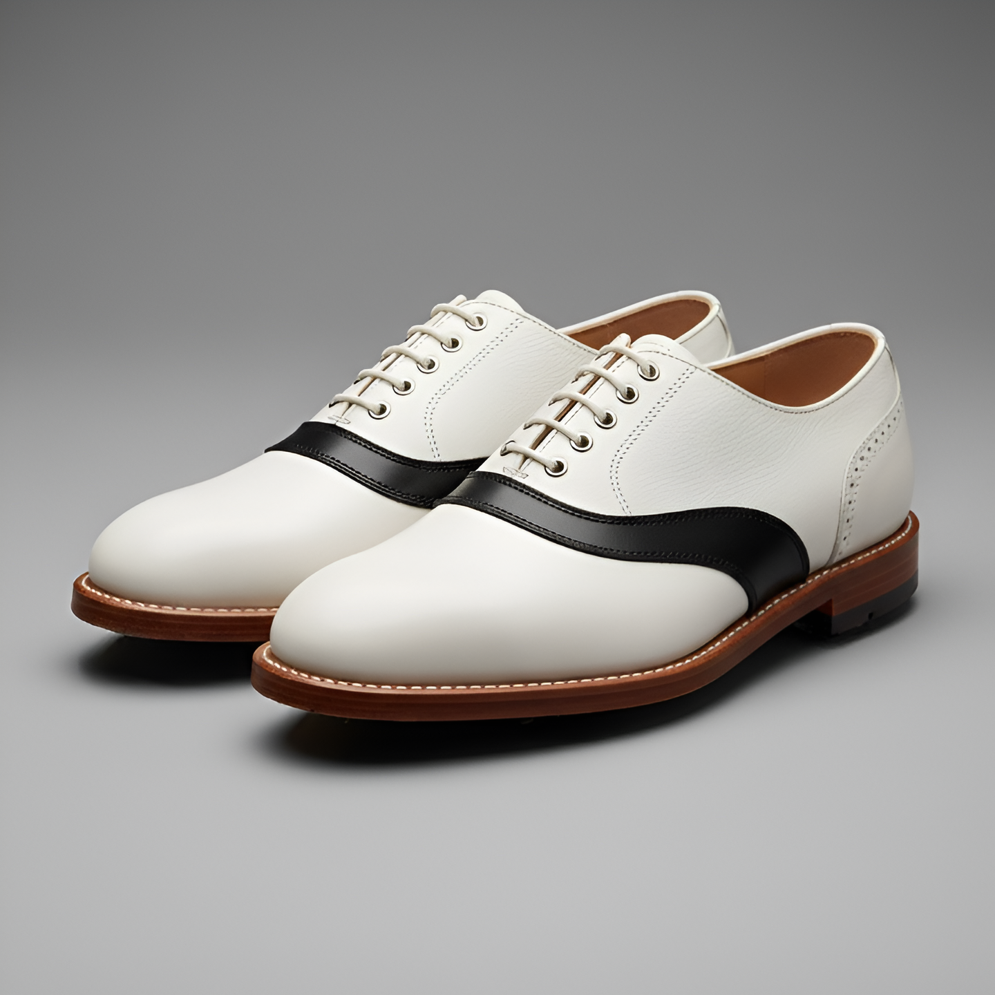 Crafted Leather Mens Designer Classic Black White Leather Saddle Golf Lace up Dress Shoes