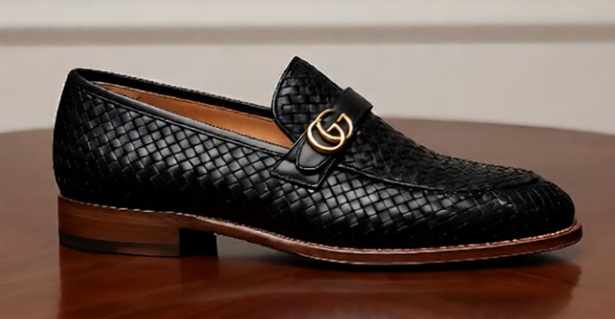 Crafted Leather Mens Designer Classic Black Woven Leather Moccasin Loafers Dress Shoes