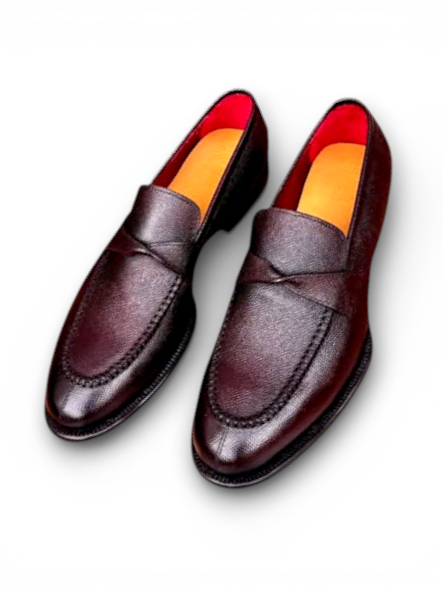 Crafted Leather Mens Designer Classic Burgundy Leather Moccasin Loafers Dress Shoes