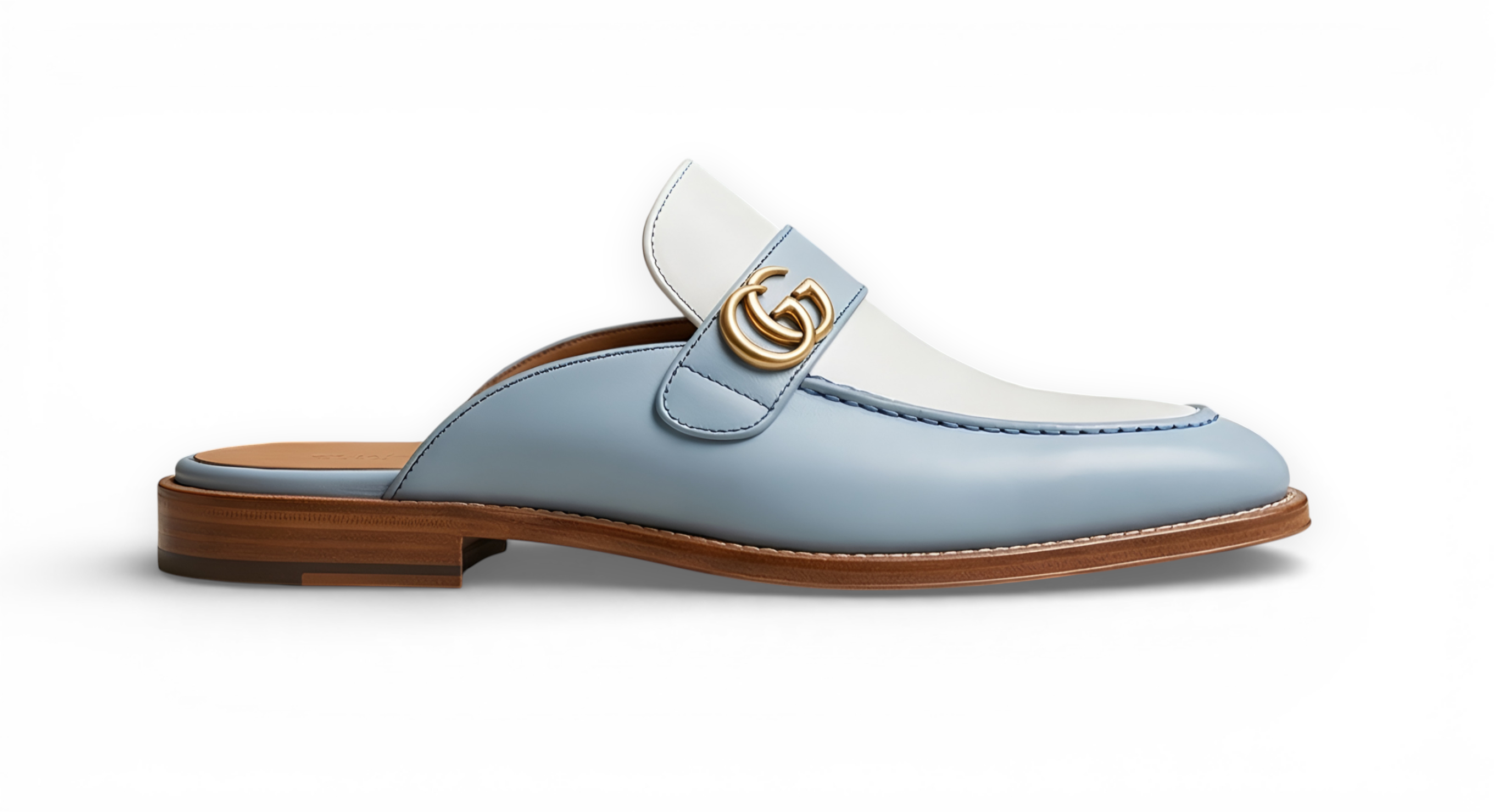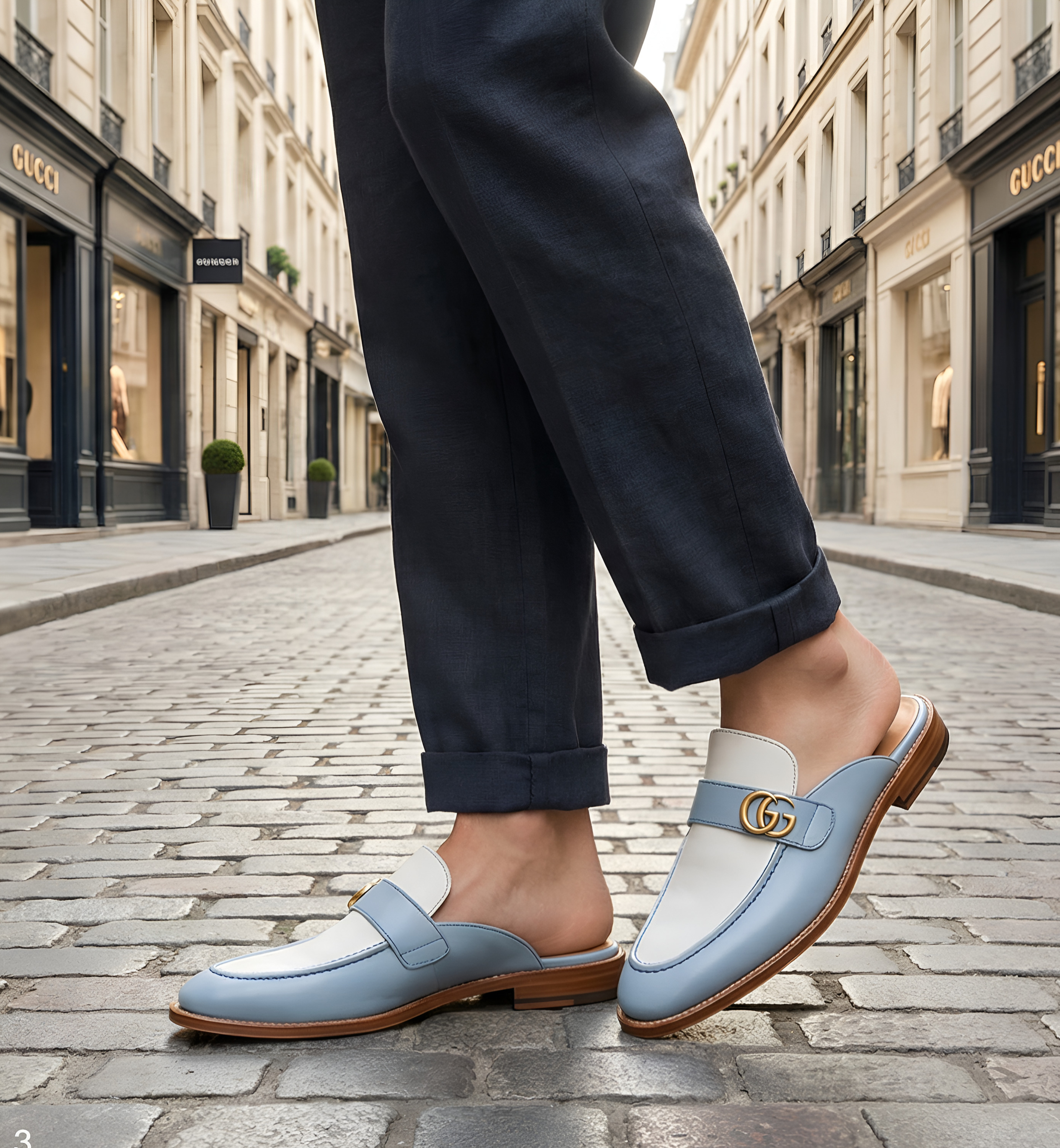 Crafted Leather Handmade Classic Sky / White Leather Mules Loafers Shoes