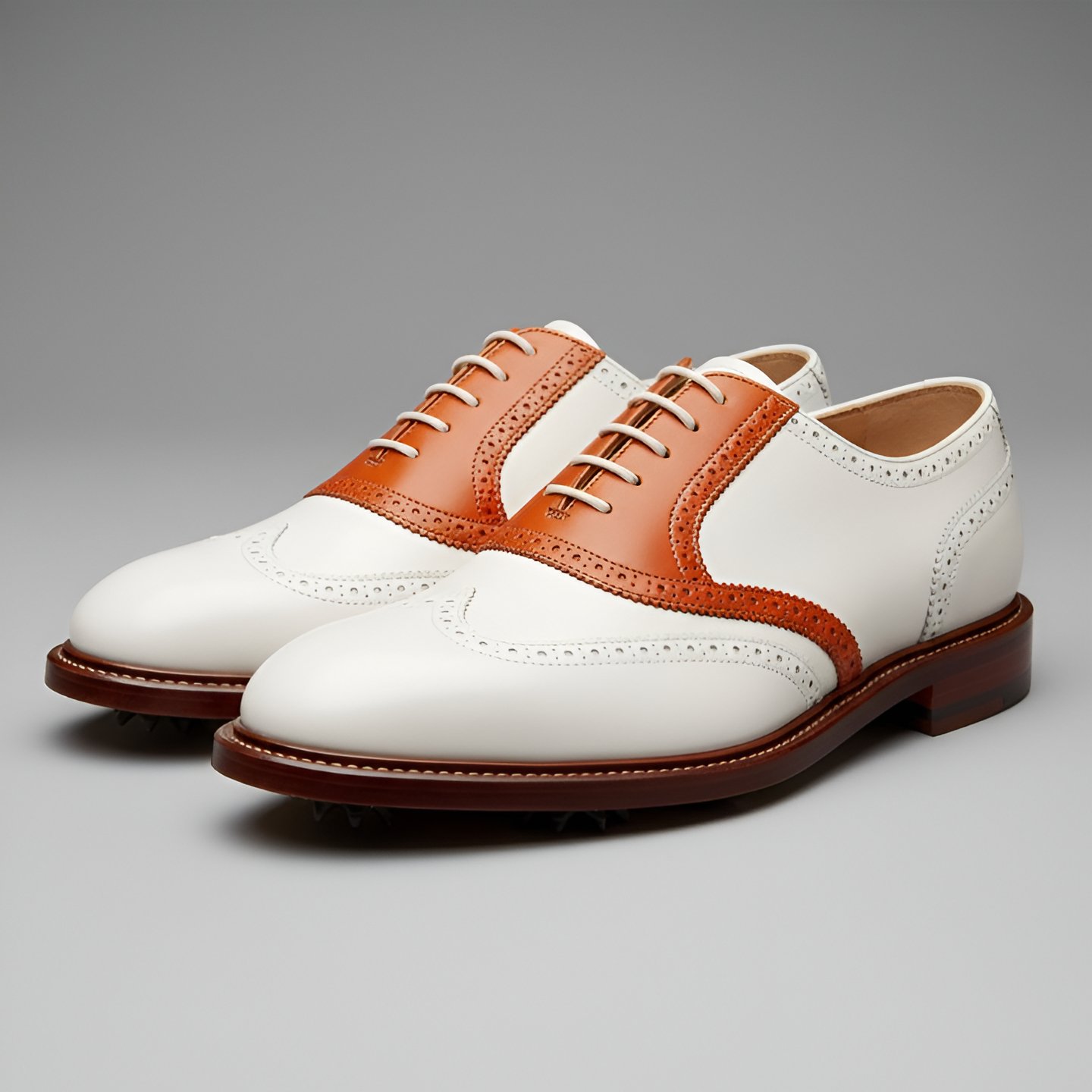 Crafted Leather Mens Designer Classic Orange White Leather Saddle Golf Lace up Dress Shoes