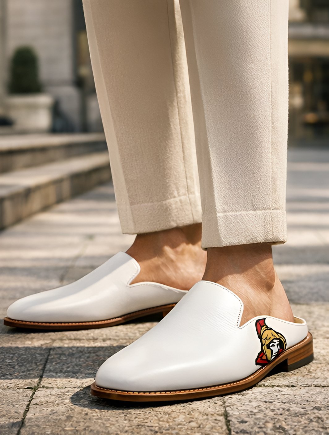 Crafted Leather Handmade Classic Mule White Leather Loafers Shoes