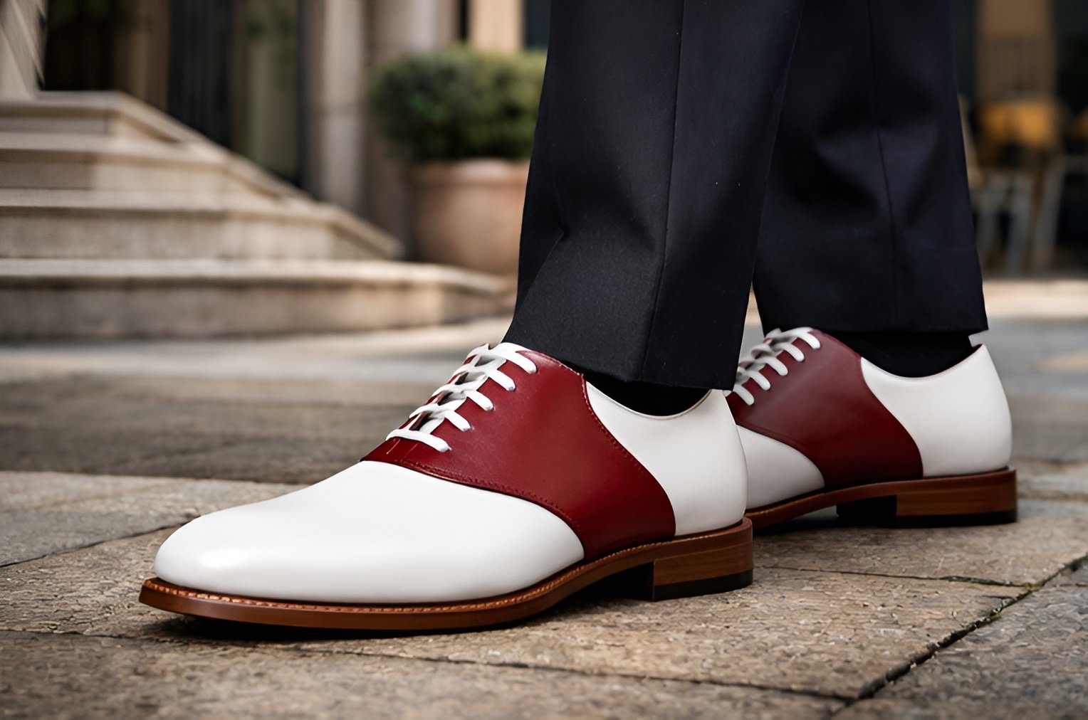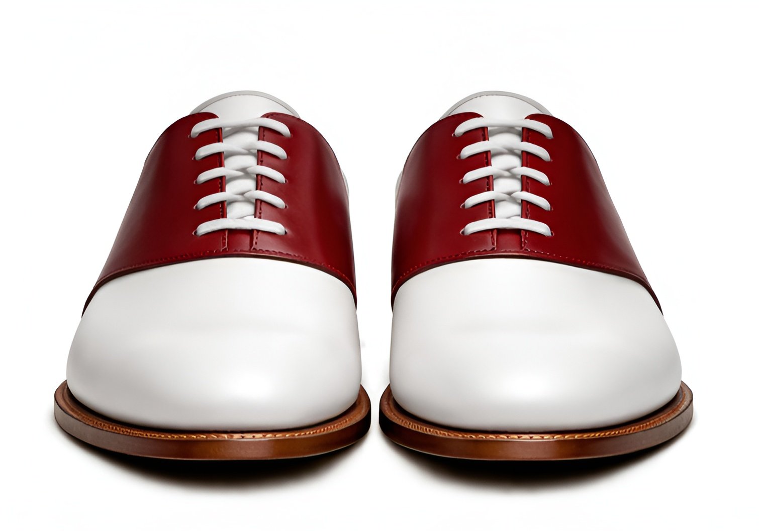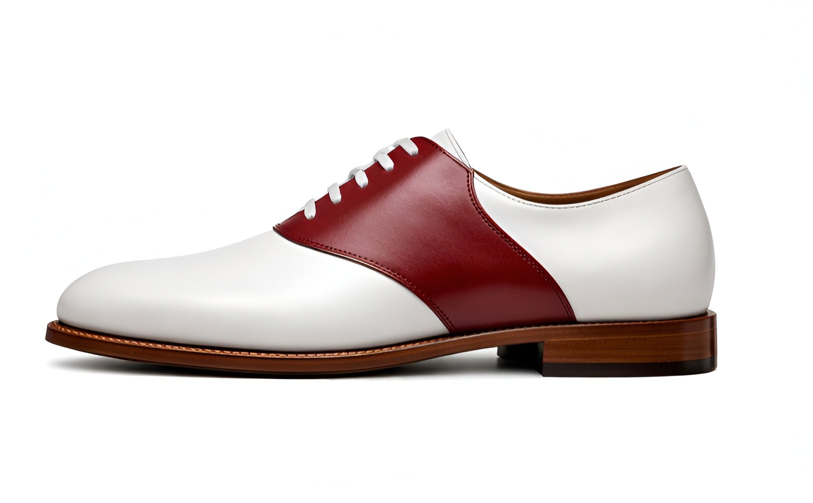 Crafted Leather Mens Designer Classic White Leather Rioja Saddle Golf Dress Shoes