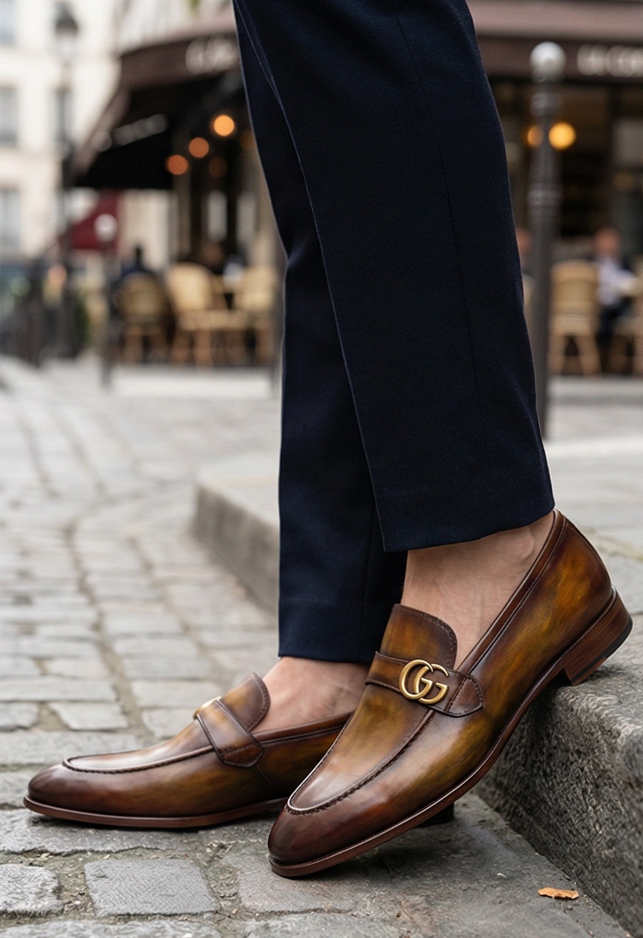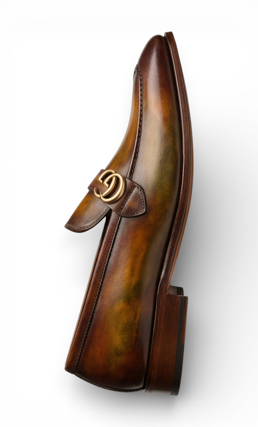 Crafted Leather Mens Designer Classic Brown Patina Leather Moccasin Loafers Dress Shoes