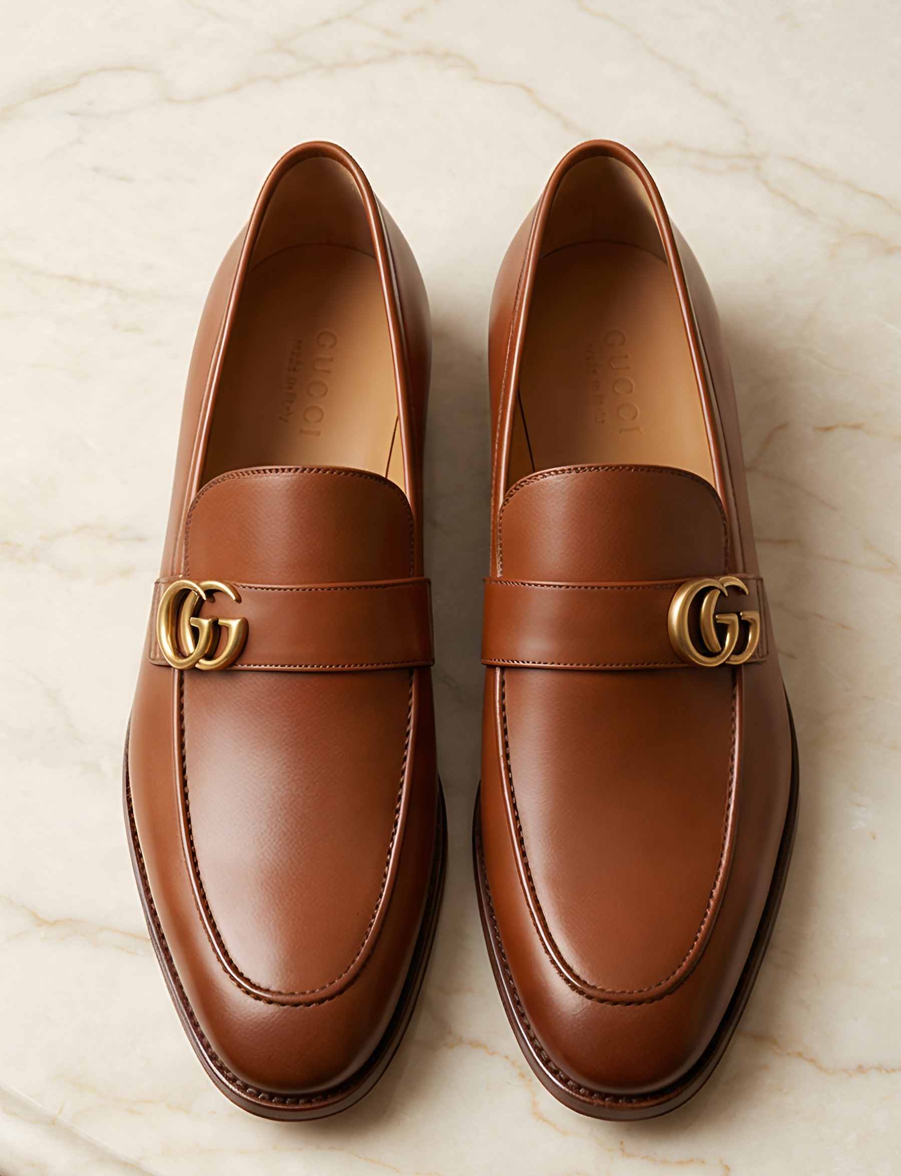 Crafted Leather Mens Designer Classic Brown Leather Moccasin Loafers Dress Shoes