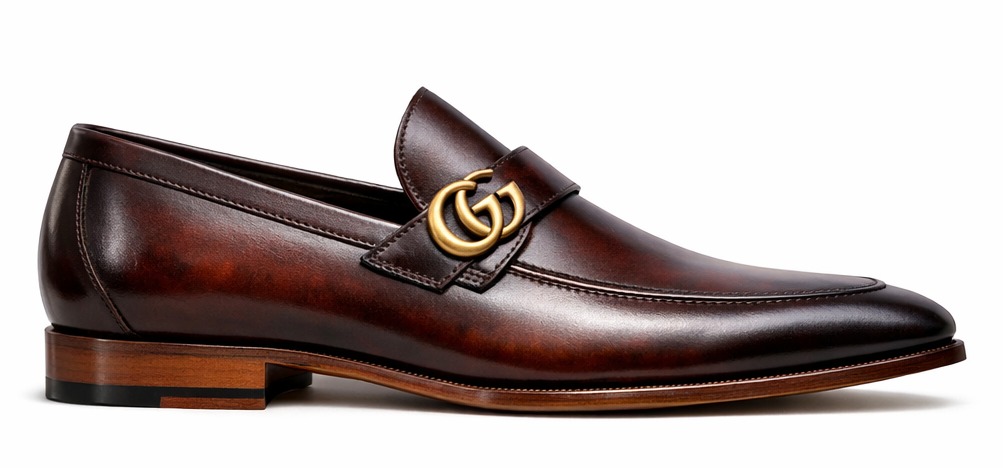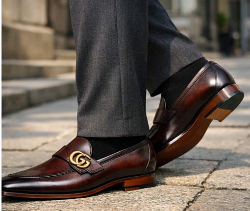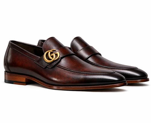 Crafted Leather Mens Designer Classic Luxury Darker Patina Leather Moccasin Loafers Dress Shoes