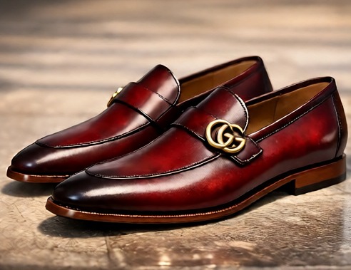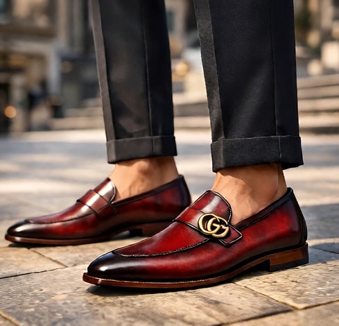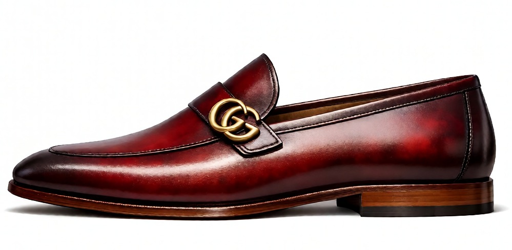 Crafted Leather Mens Designer Classic Luxury Red Patina Leather Moccasin Loafers Dress Shoes