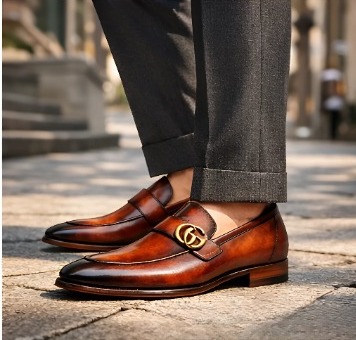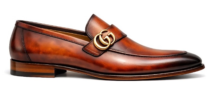 Crafted Leather Mens Designer Classic Luxury Brown Shaded Patina Leather Moccasin Loafers Dress Shoes