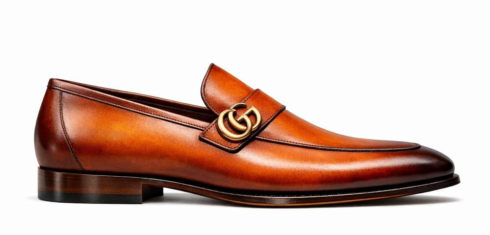 Crafted Leather Mens Designer Classic Luxury Tan Brown Shaded Patina Leather Moccasin Loafers Dress Shoes